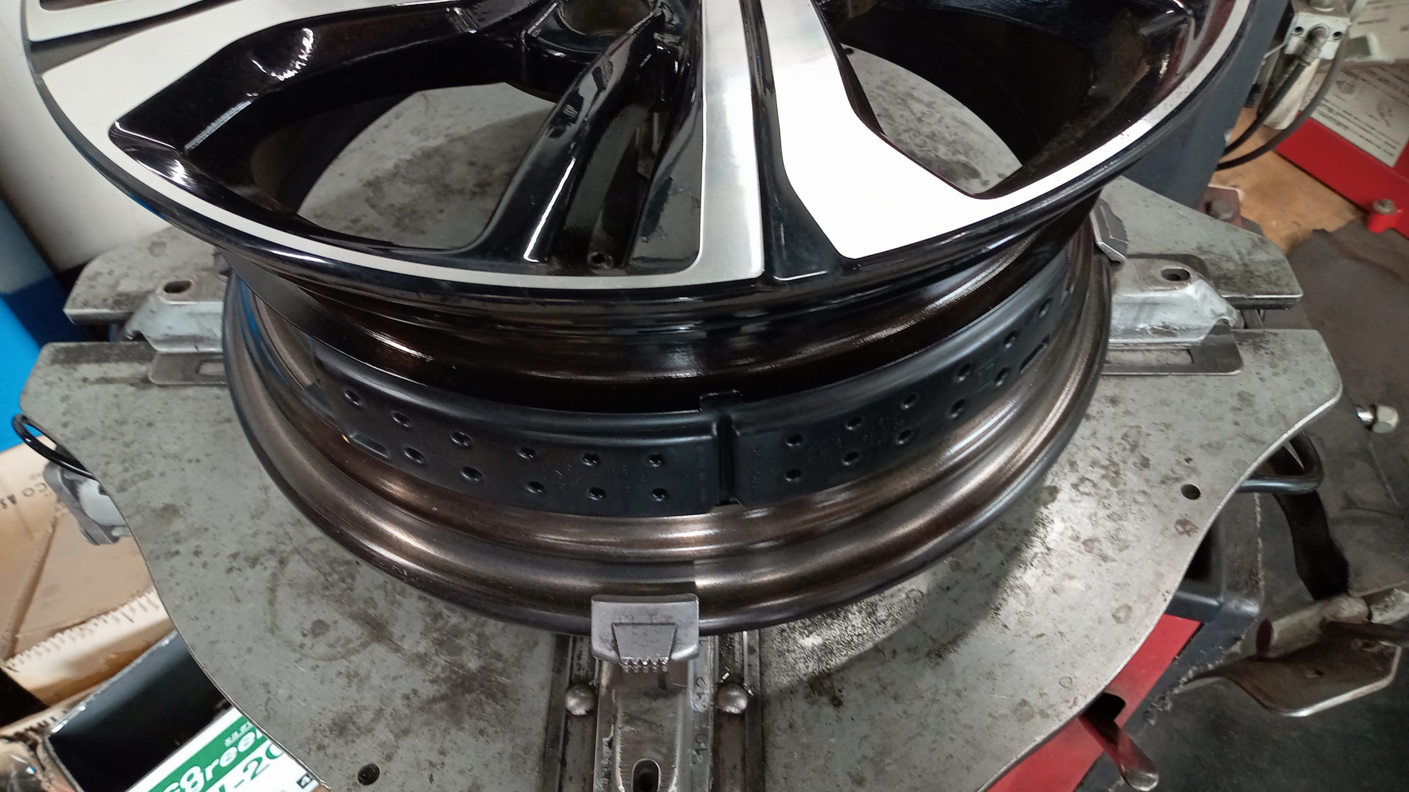 ホイール周囲の黒い“腹巻き”のようなもの。