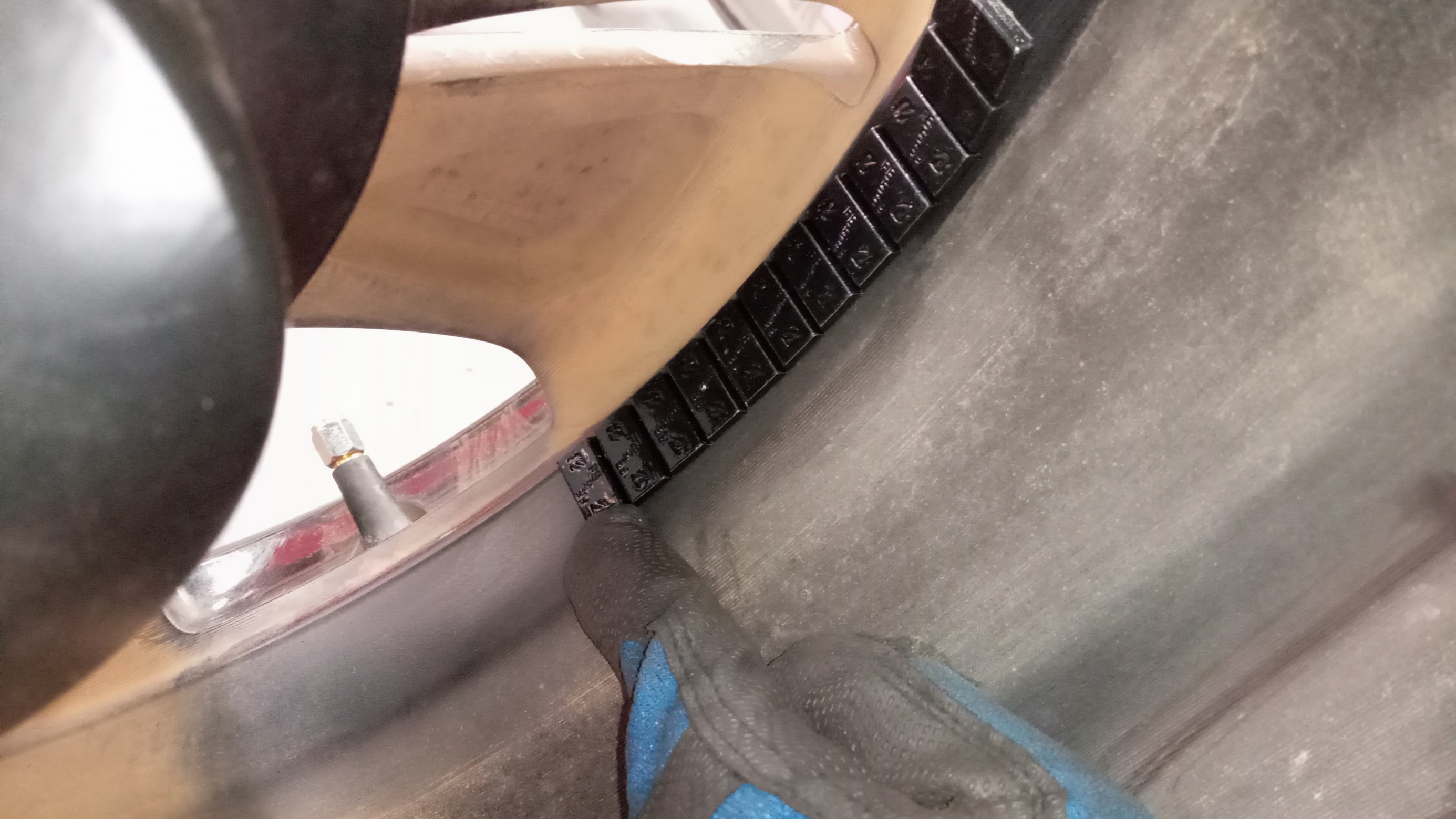 当店自慢の黒い貼り付けウエイトでバランスをとります。