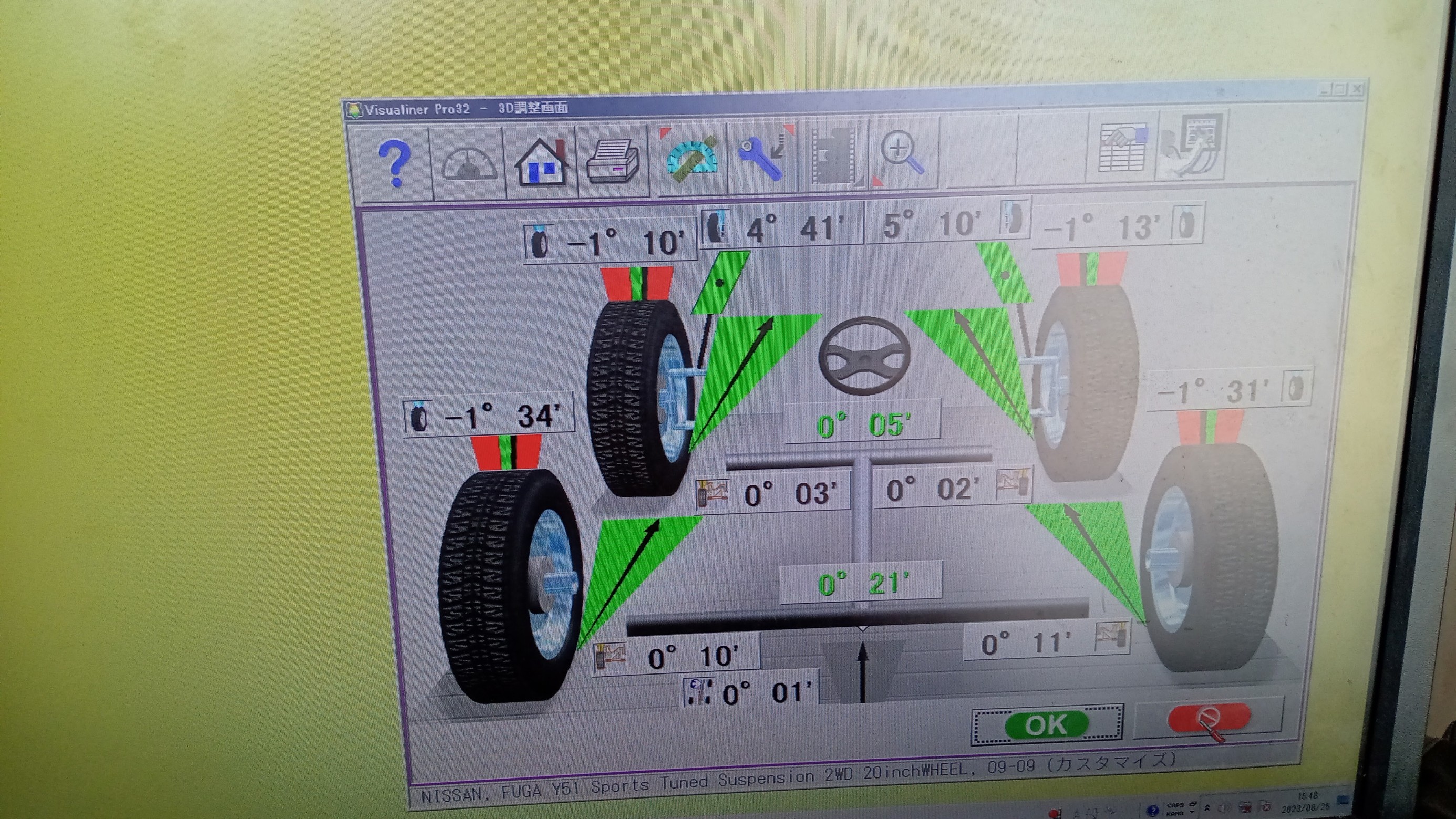 本日はニッサン フーガにアライメント調整実施のご紹介です。