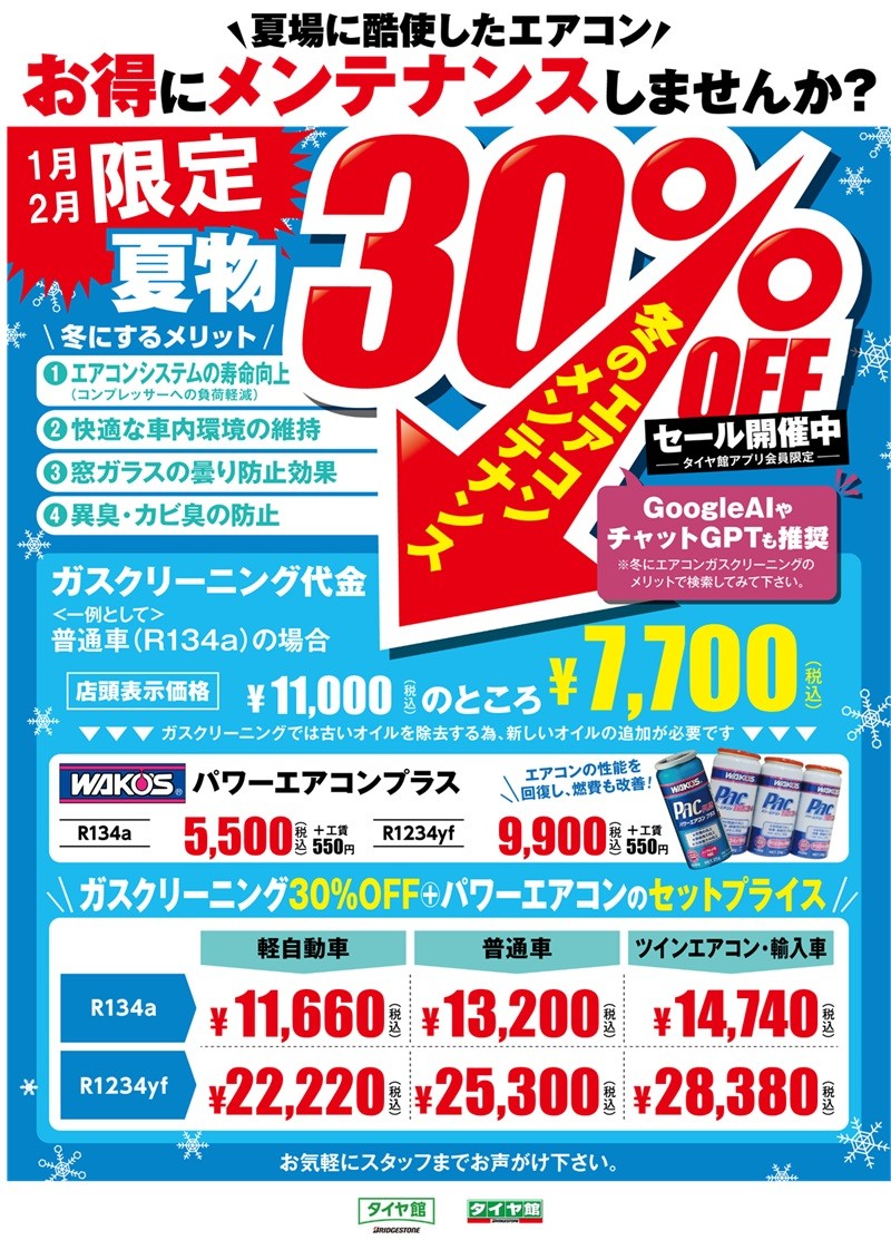 【知らないアナタは損をする!? 冬支度の新定番!冬こそエアコンガスクリーニング! そのメリットとは??? タイヤ館がこっそりおしえちゃいます♪】