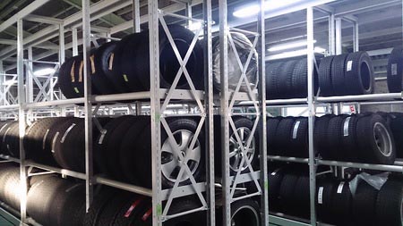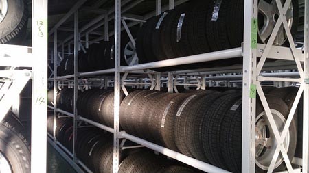 タイヤ館矢賀店ではお客様をサポートさせて頂くために専用の倉庫にて