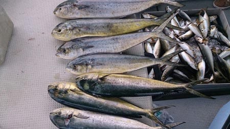 本日の釣果は アジ 80匹 サバ 3匹 シイラ 7匹 ベラ 3匹