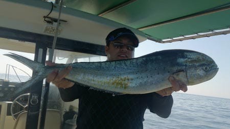 お昼前に やっと魚たちが顔を見せてくれましたが なんとシイラでした。