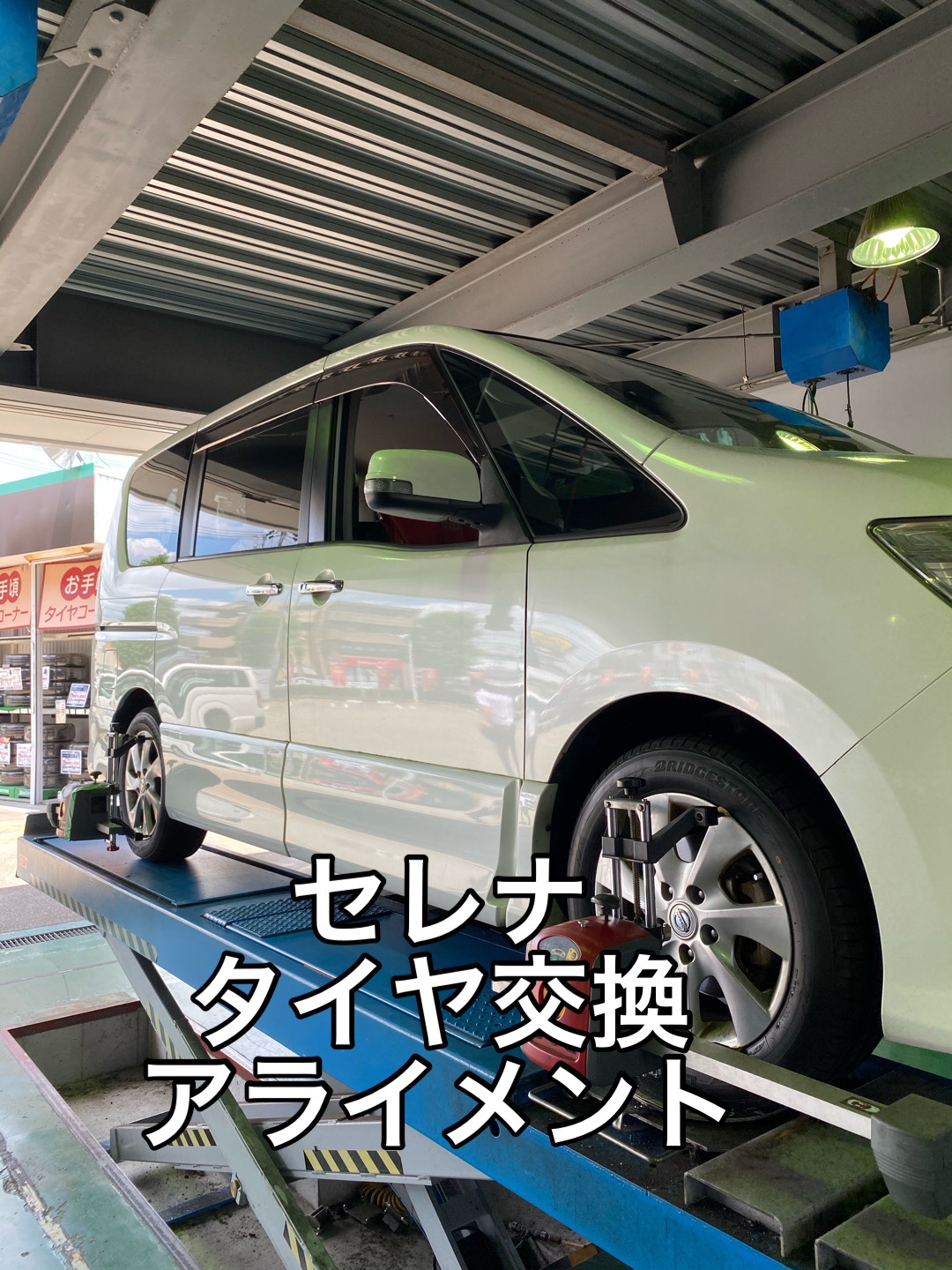 日産 セレナ タイヤ交換 アライメント