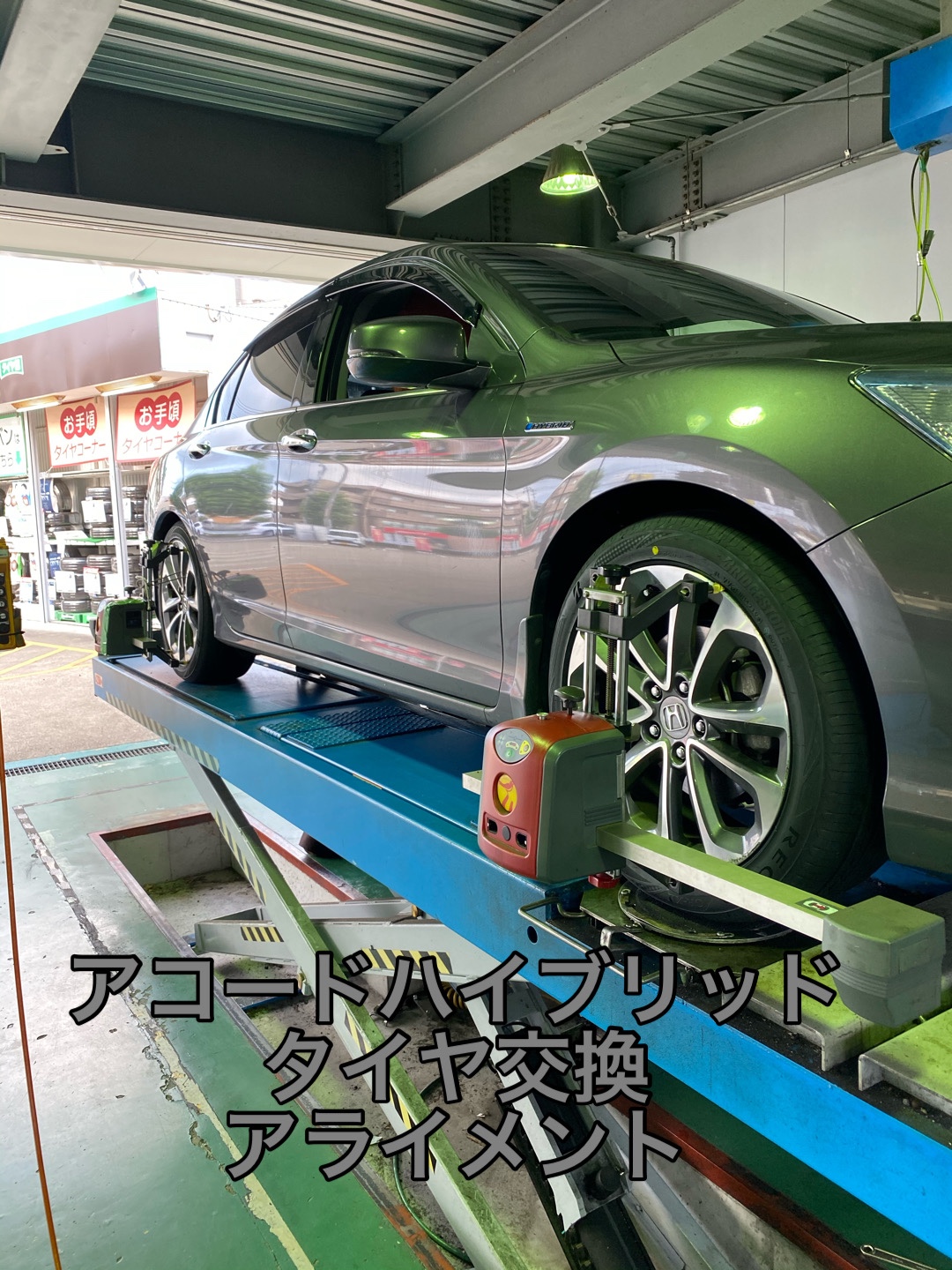 ホンダ アコードハイブリッド タイヤ交換 アライメント