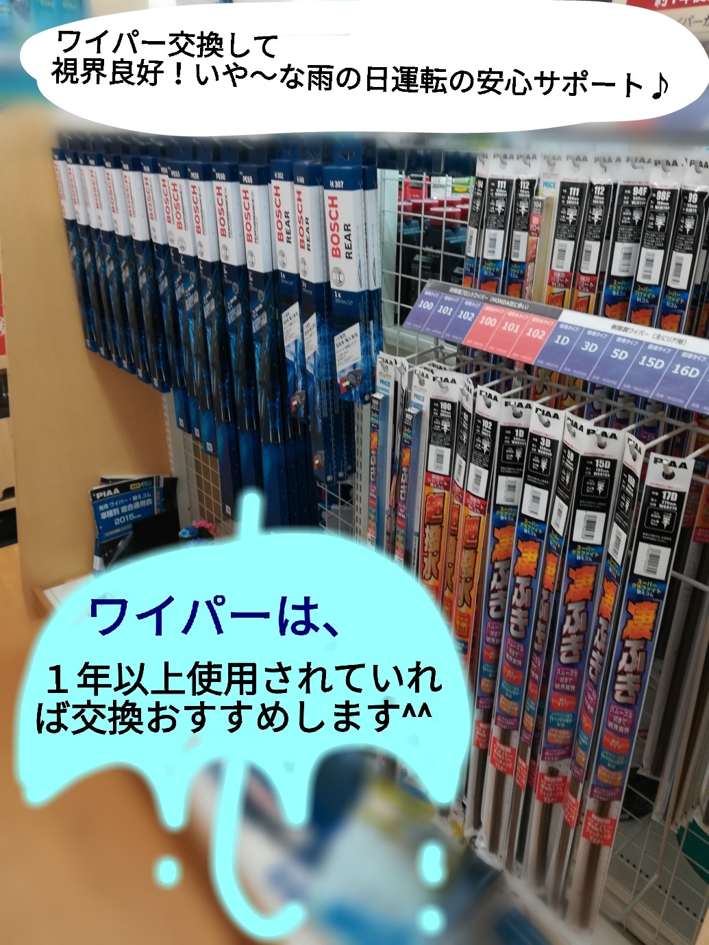 ワイパーは視界を良くしてくれて私達の安全運転をサポートしてくれる大切な部品です。