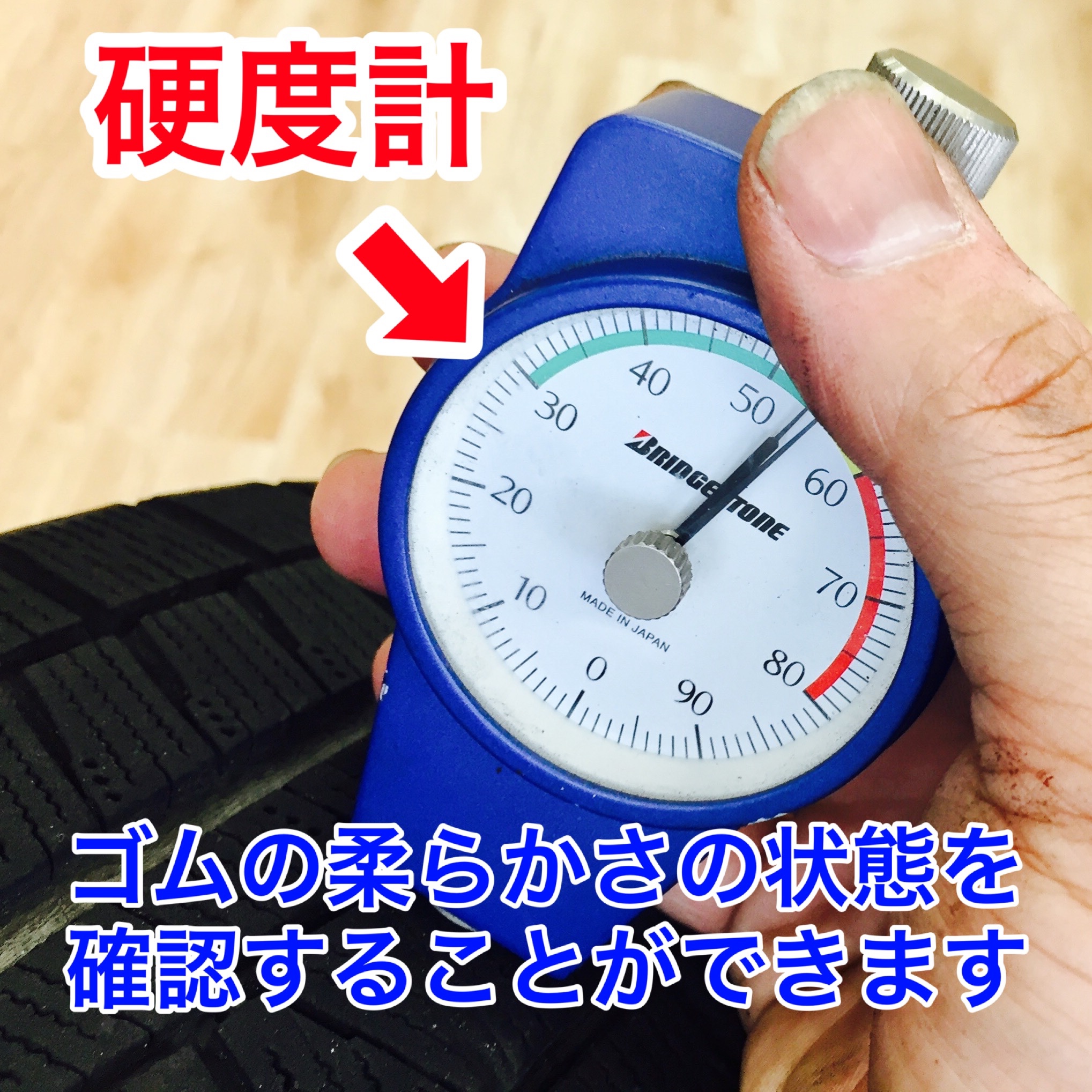 スタッドレスタイヤは夏タイヤと同様の点検に加え『柔らかさ』と『プラットホームまでの残り溝の深さ』が重要となってきます。
