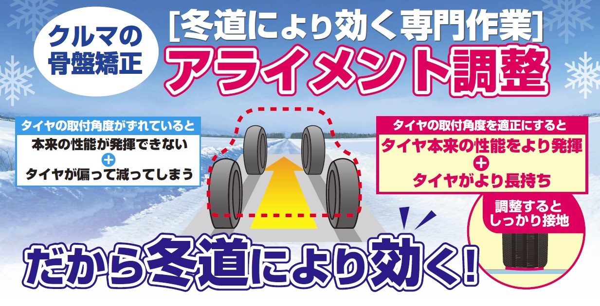 接地が重要な冬用タイヤだからこそ『アライメント調整』の効果があります!!