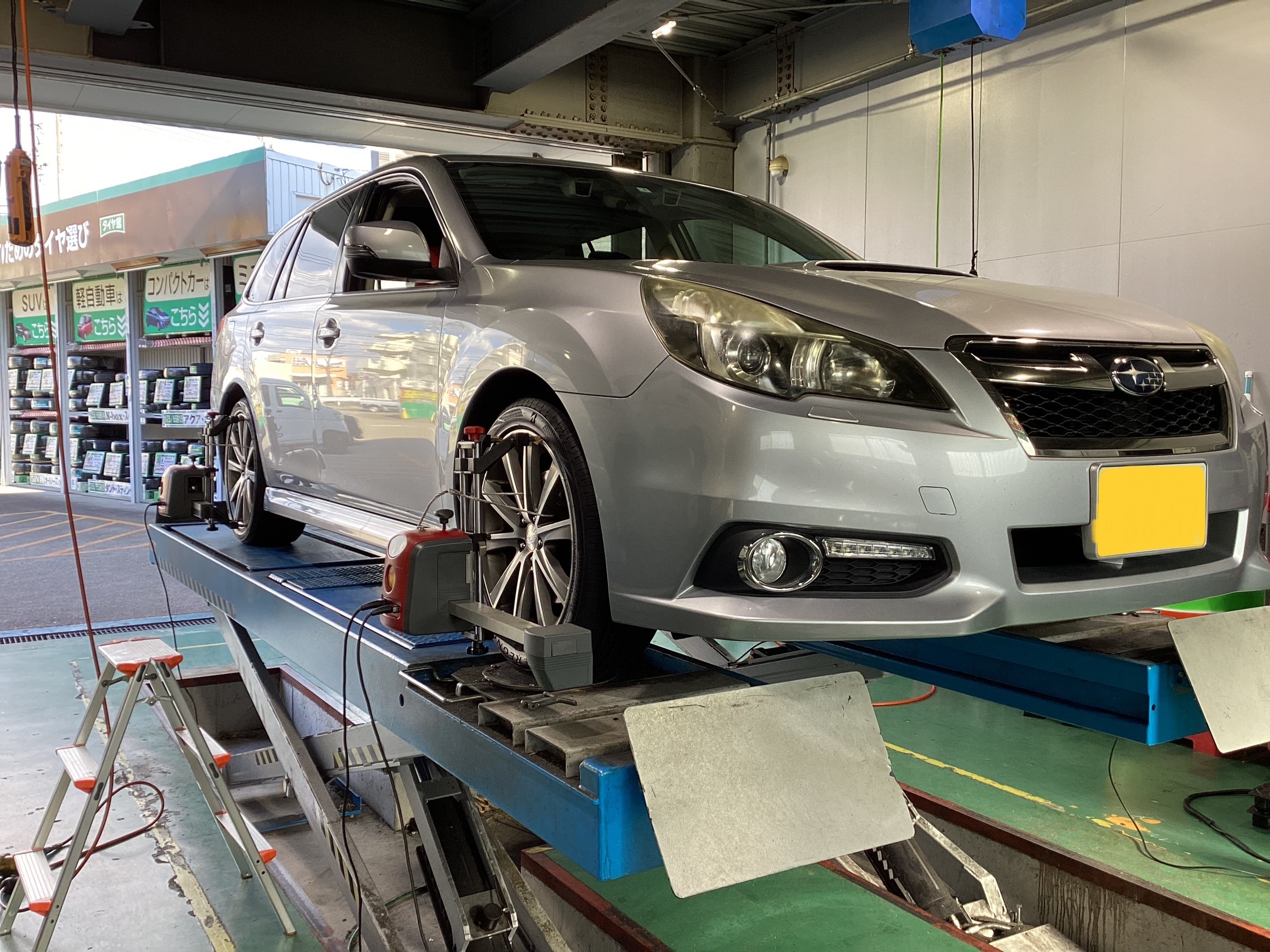 スバル レガシィTWのタイヤ交換・アライメント、作業のご紹介です!