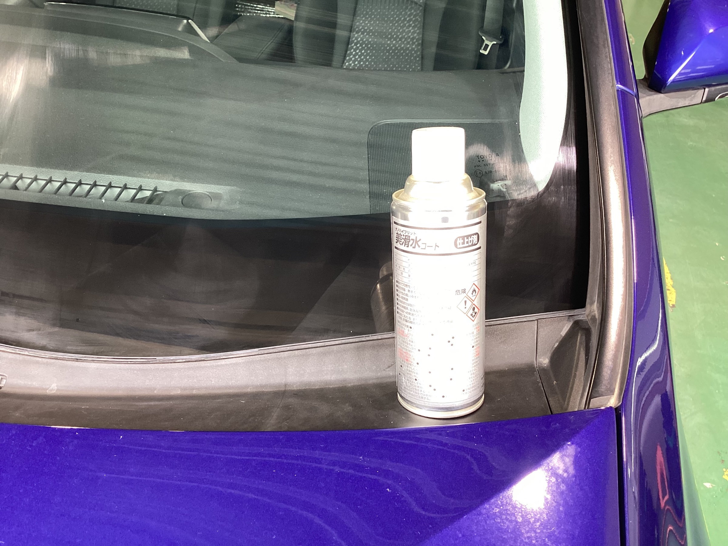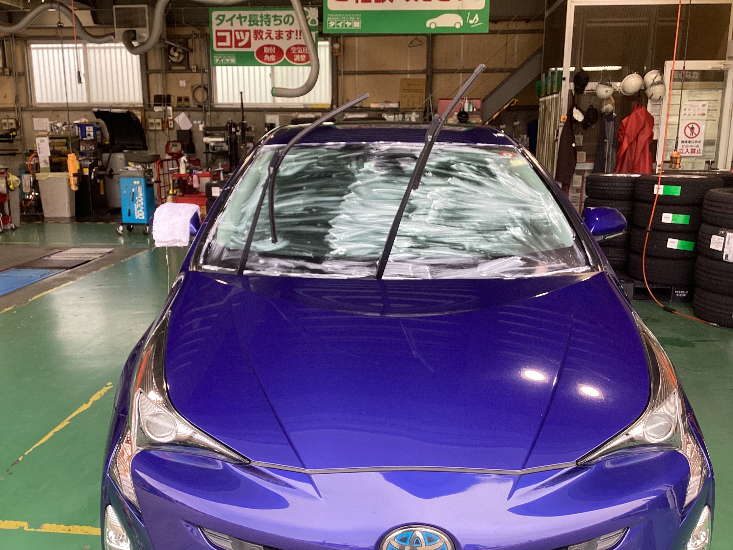お車のフロントガラスに撥水コーティング作業も承っております!