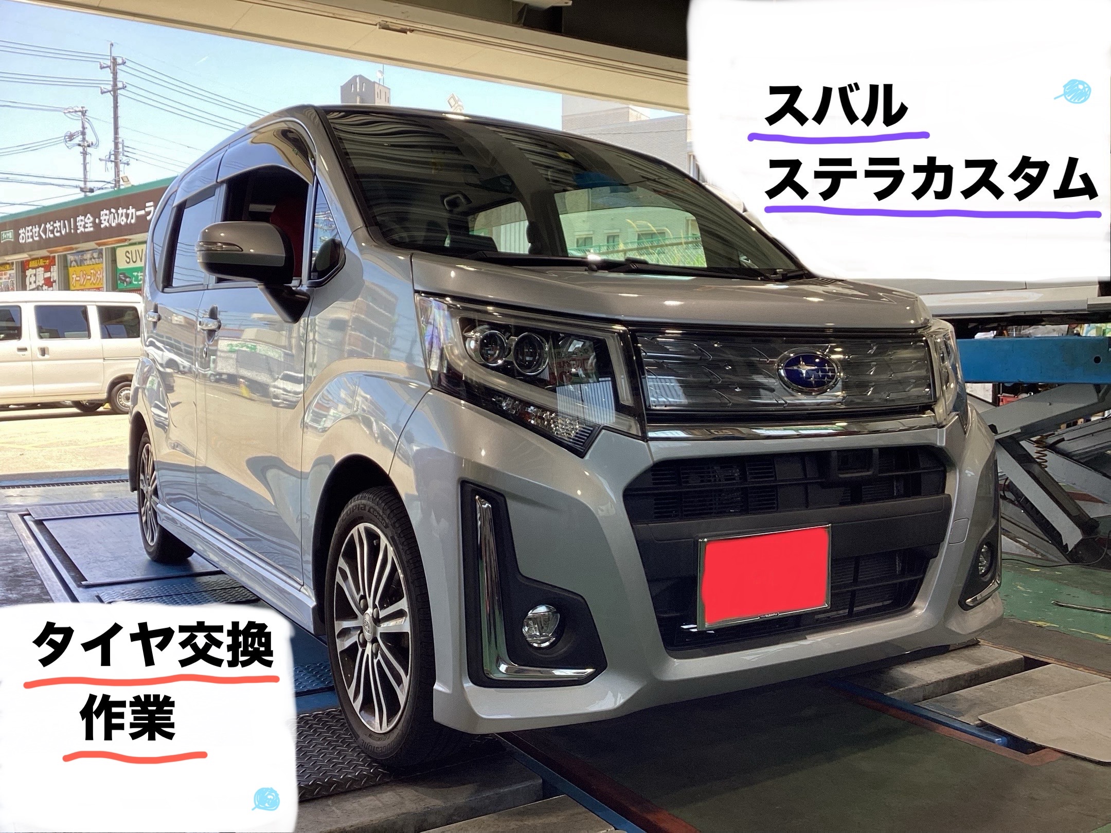 【スバル ステラ•カスタム】 タイヤ交換作業