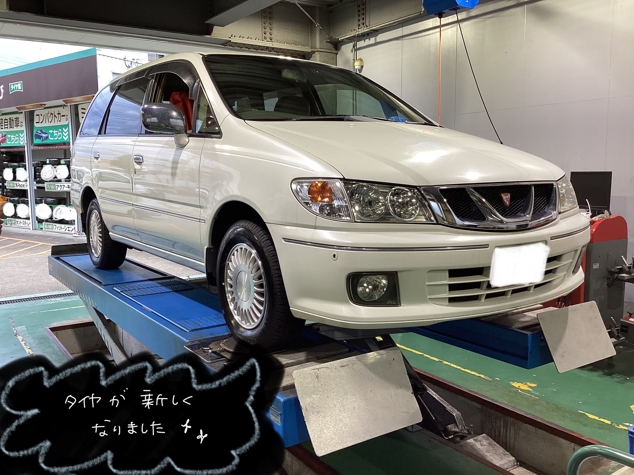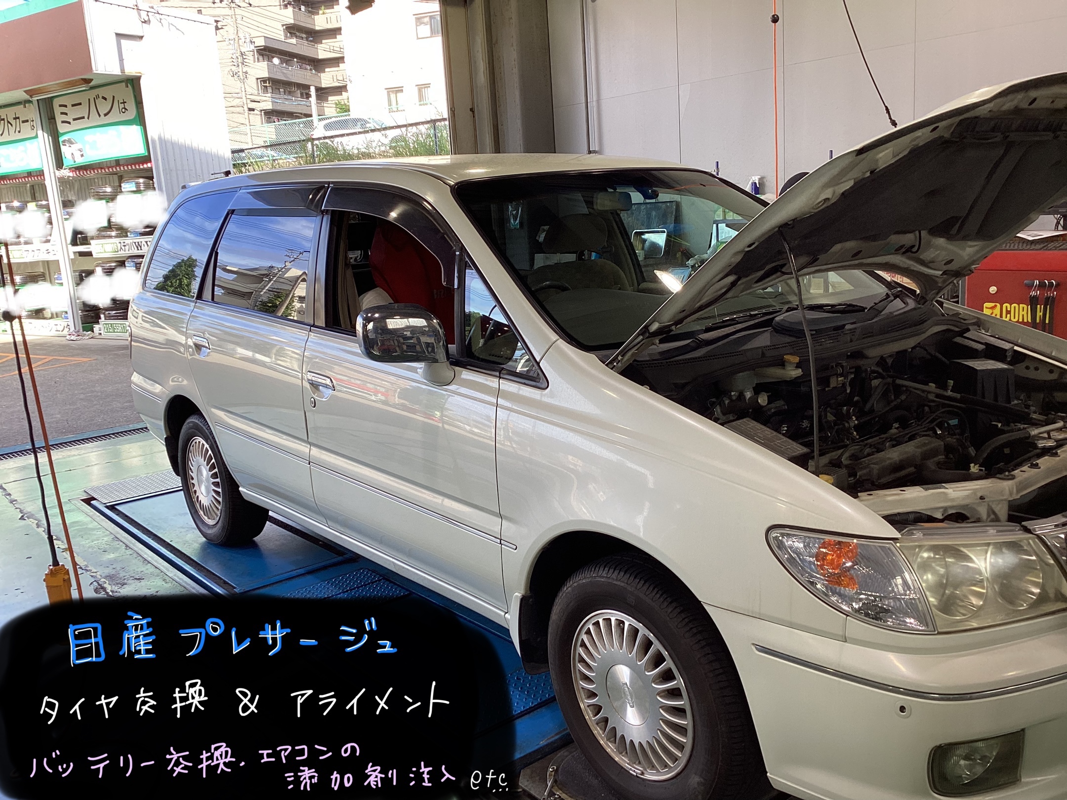日産 プレサージュ タイヤ交換、アライメント作業 他