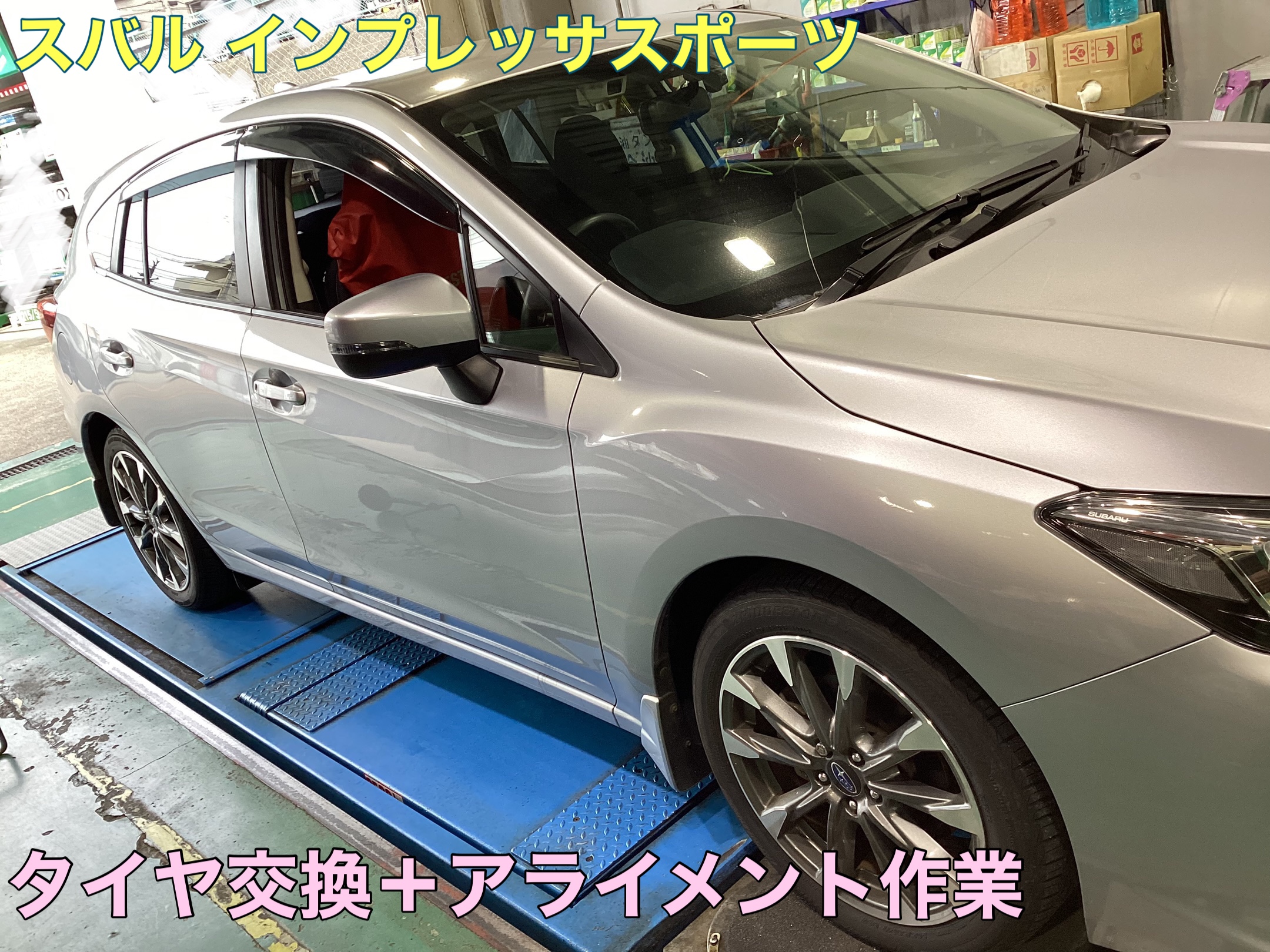 【スバル インプレッサスポーツ】タイヤ交換、アライメント作業