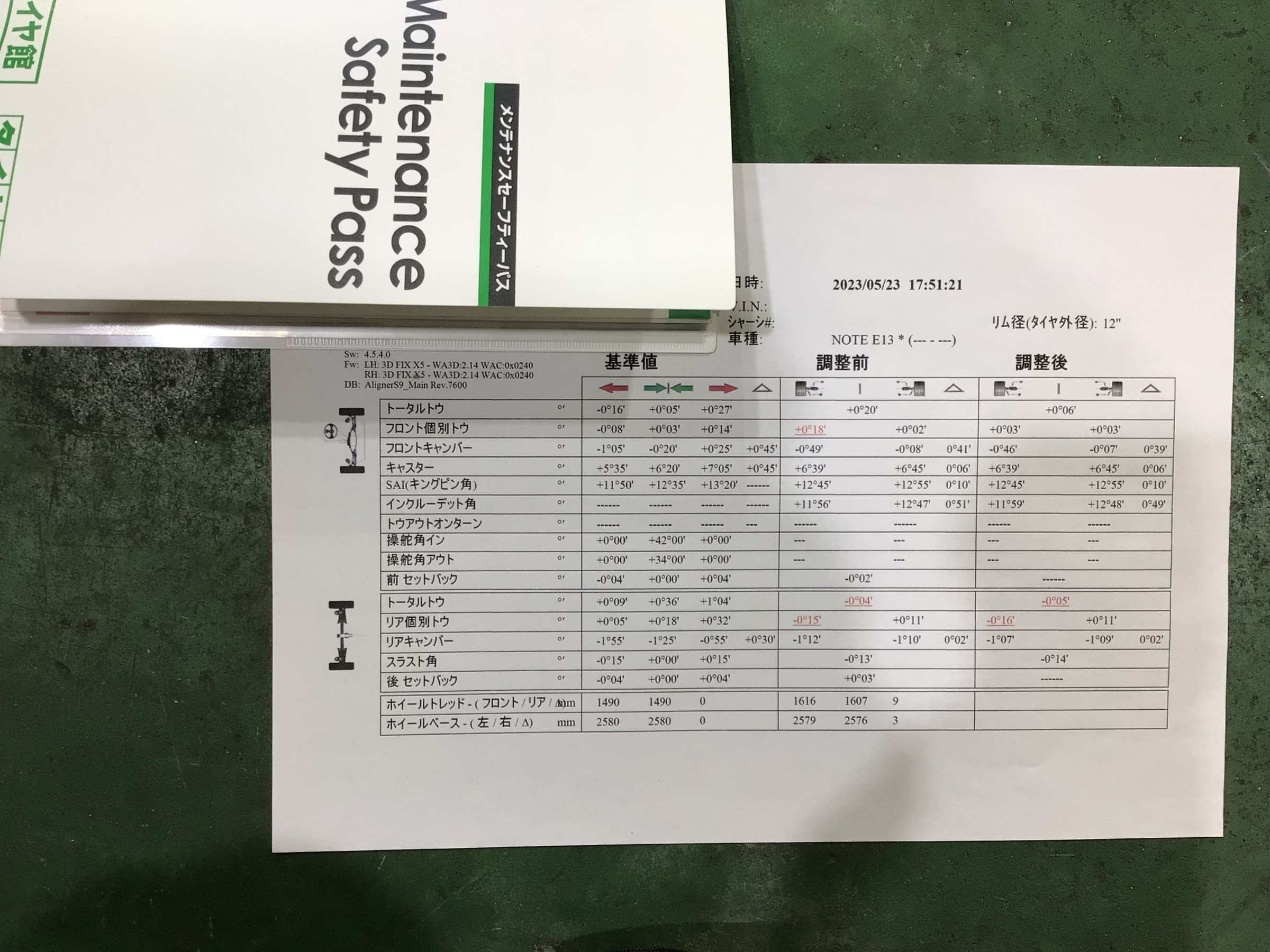 その後、ステアリングを真ん中に固定して測定完了です。
