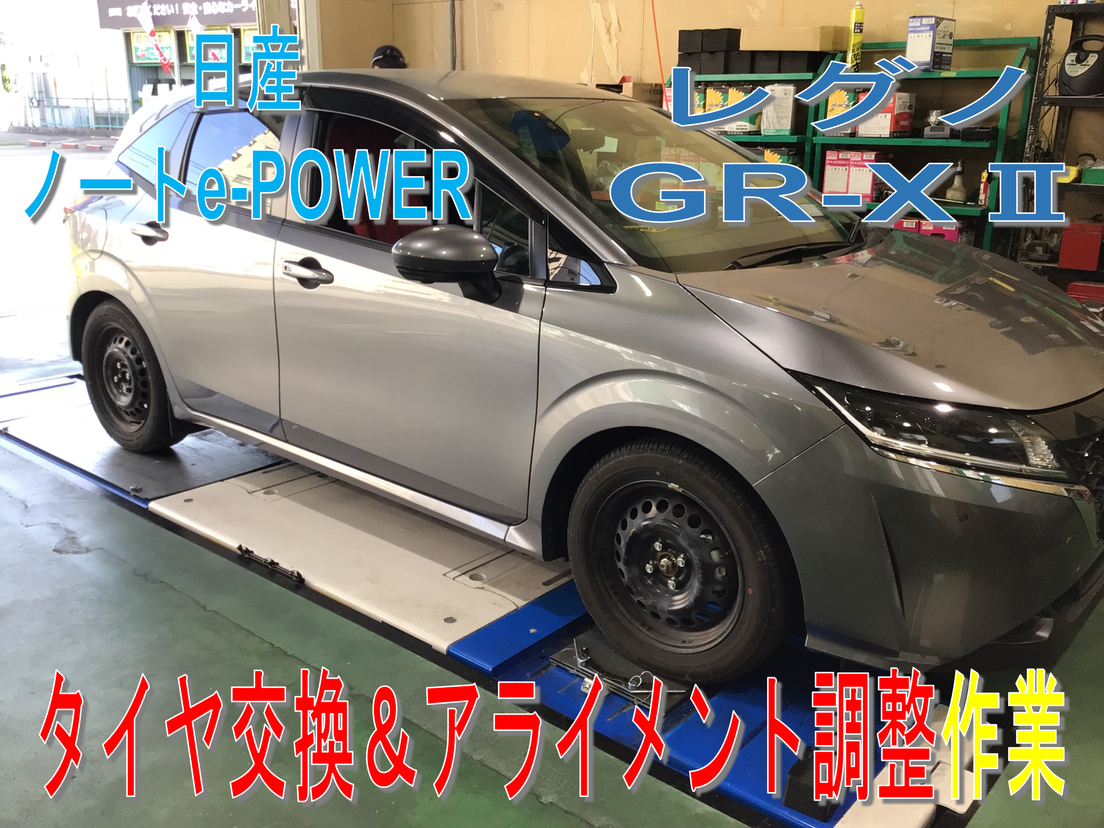 日産 ノートe-POWER のタイヤ交換・アライメント調整作業のご紹介です!