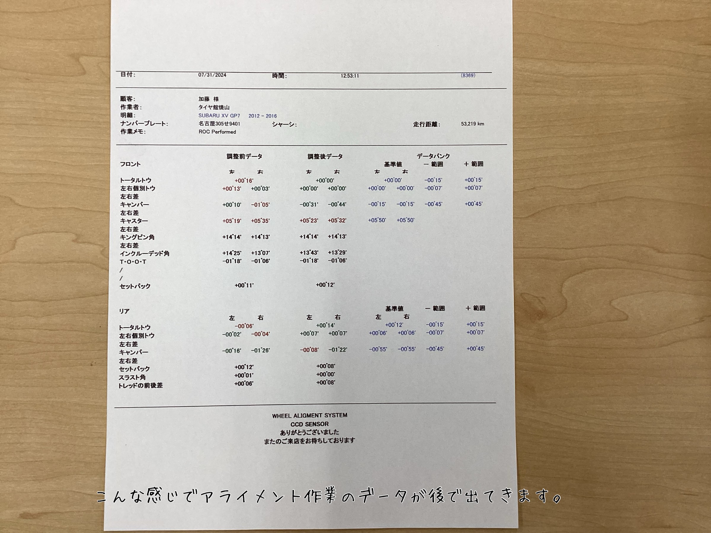 アライメント作業後