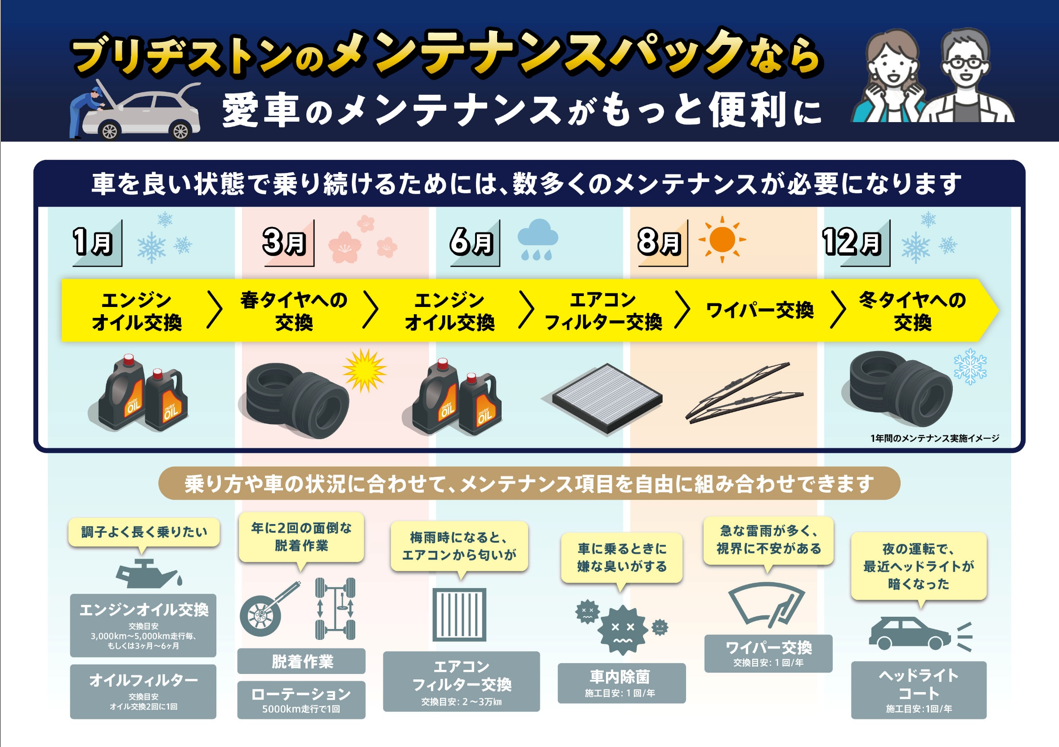 オイル交換もタイヤの履き替えも、タイヤ館のメンテナンスパックがオススメです!