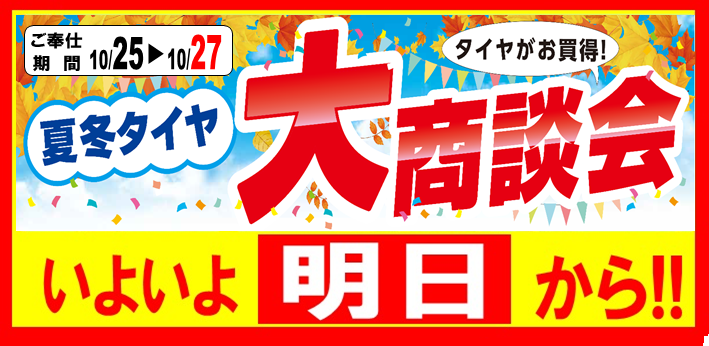 10月も後半に入り、夜は肌寒くなってきましたね。店内もスタッドレスコーナーを作ったりしましたので冬が近づいて来たなと実感しております(笑)