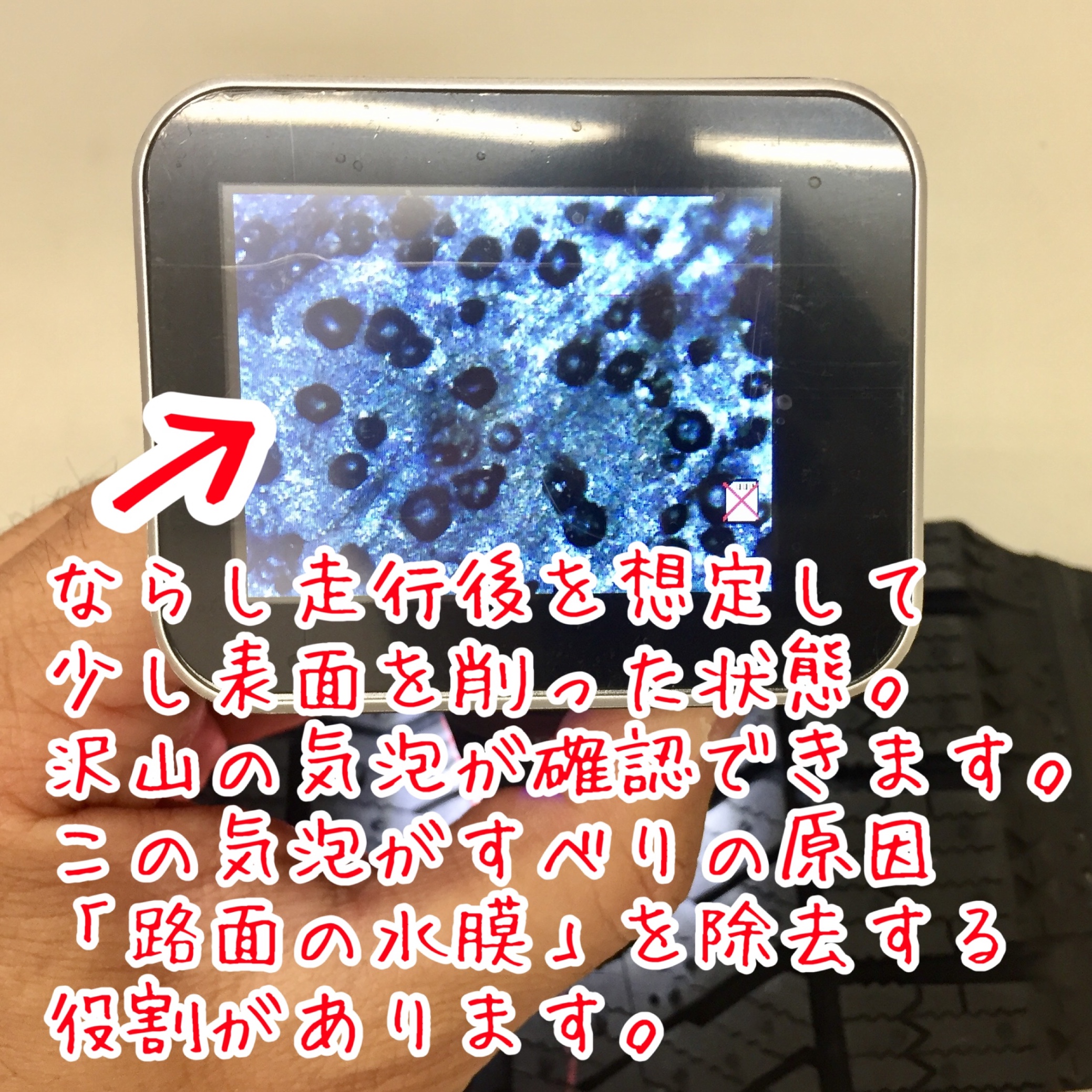 これが、慣らし走行をしていただきゴム表面がほんの少し削れるだけで、こんなにたくさんの気泡が確認できます。