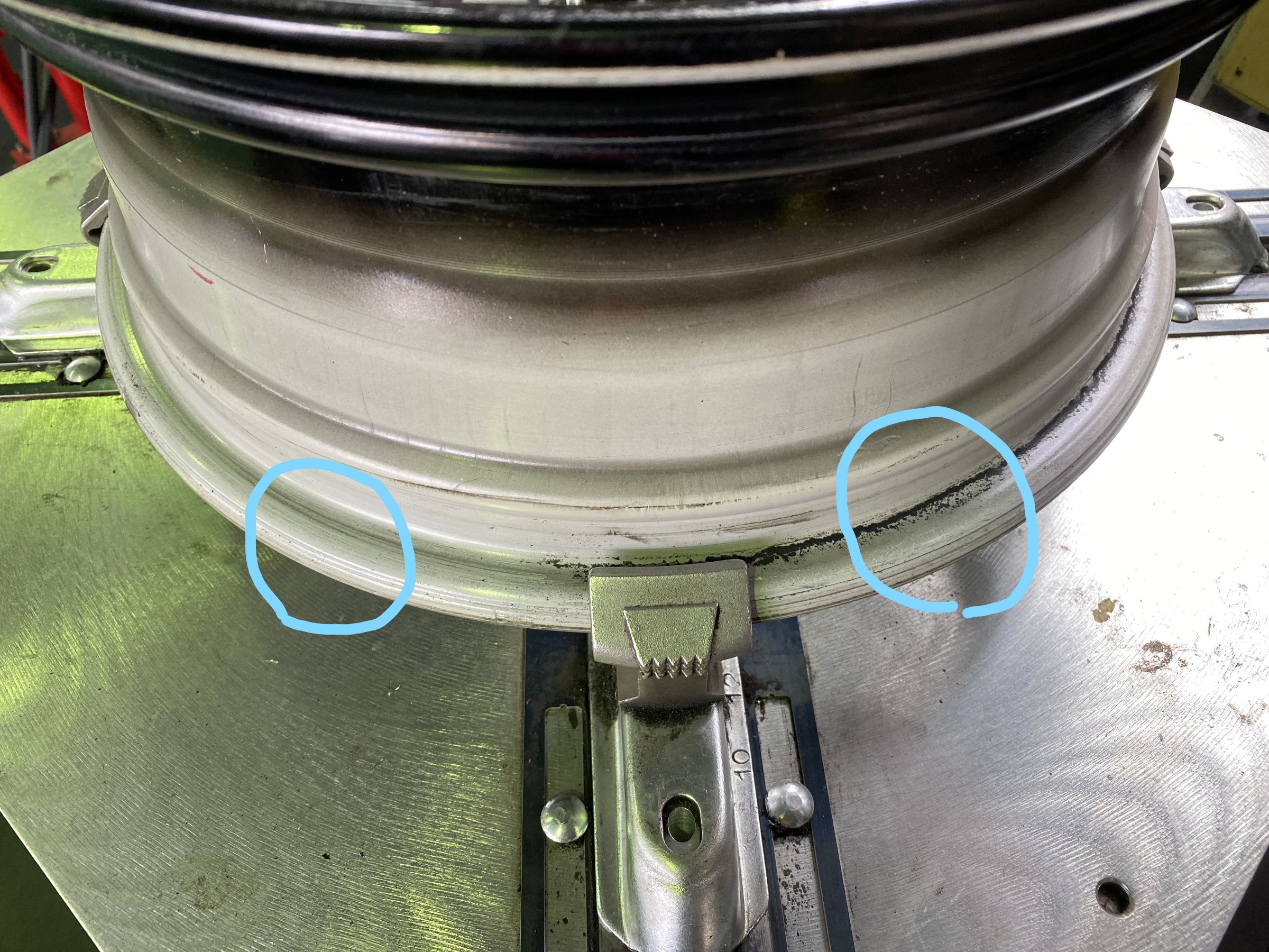 タイヤとホイールの接触場所の汚れ
