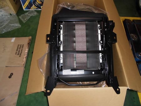 写真1 シートは、汚れないように箱の中でシートレールを取り付けします。