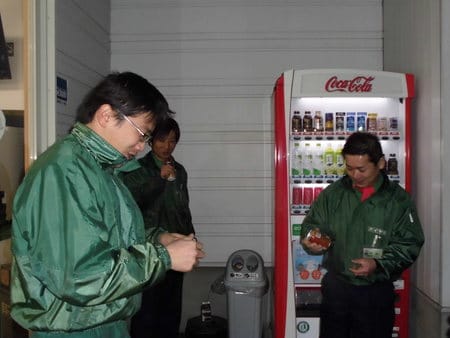 写真2は、自販機に群がるスタッフw