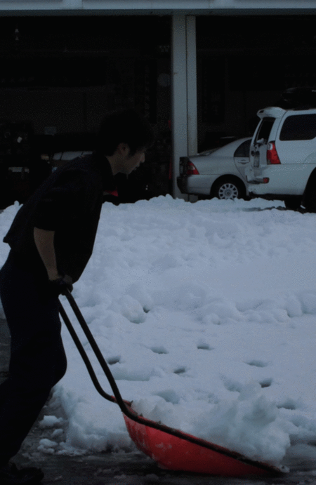 店長!雪を上まで乗せるのに体力使い果たしてますね(笑)