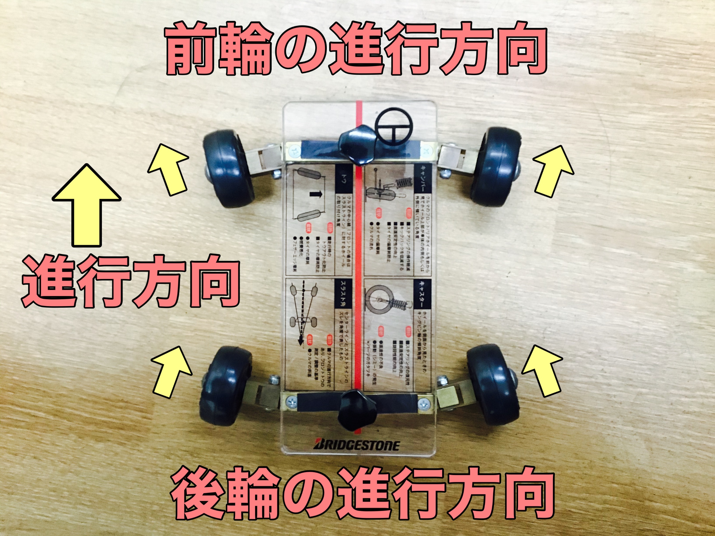偏摩耗の原因の1つとして【タイヤの取付け角度のズレ】