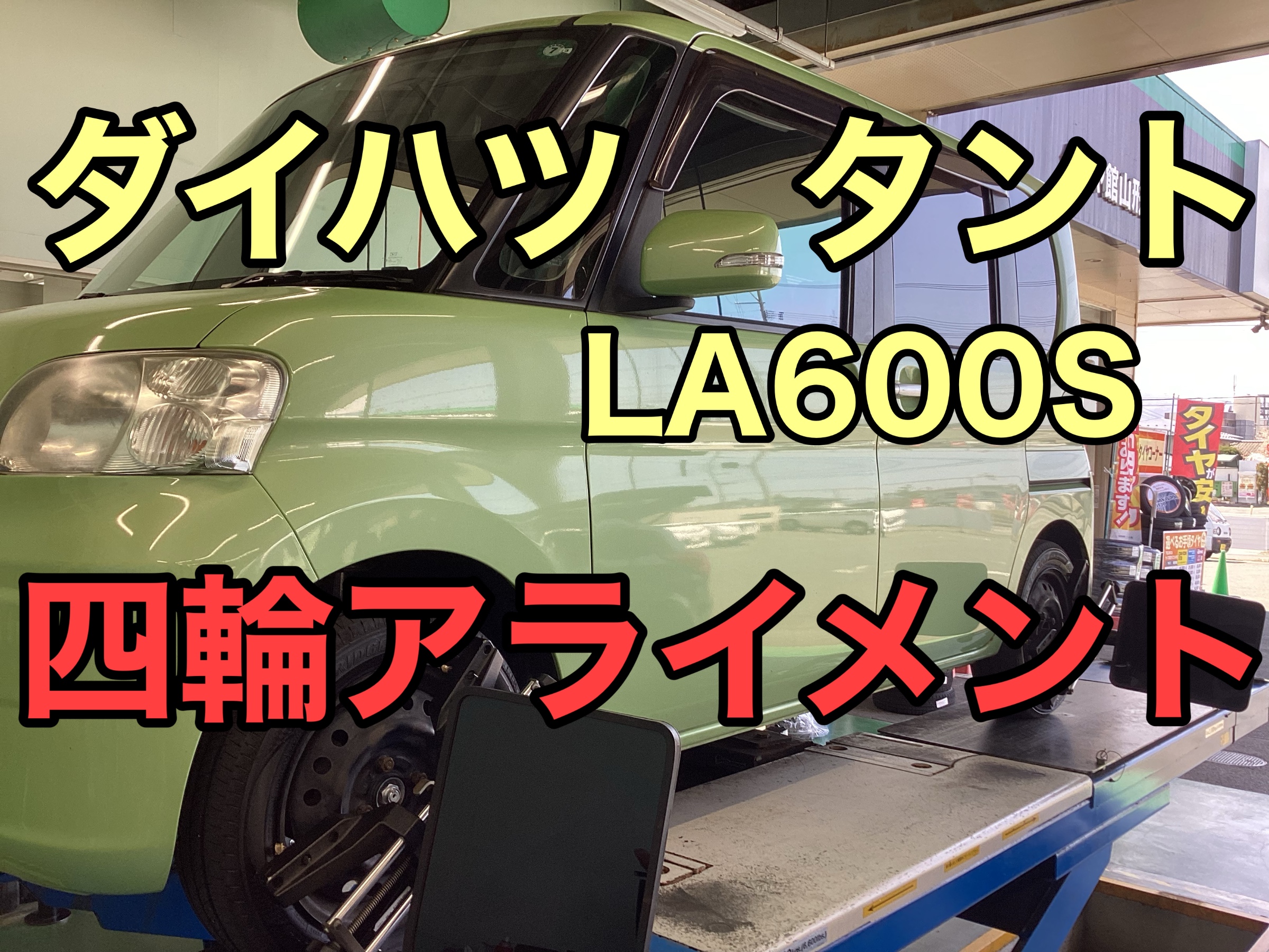 今回はダイハツタントの四輪アライメント作業を