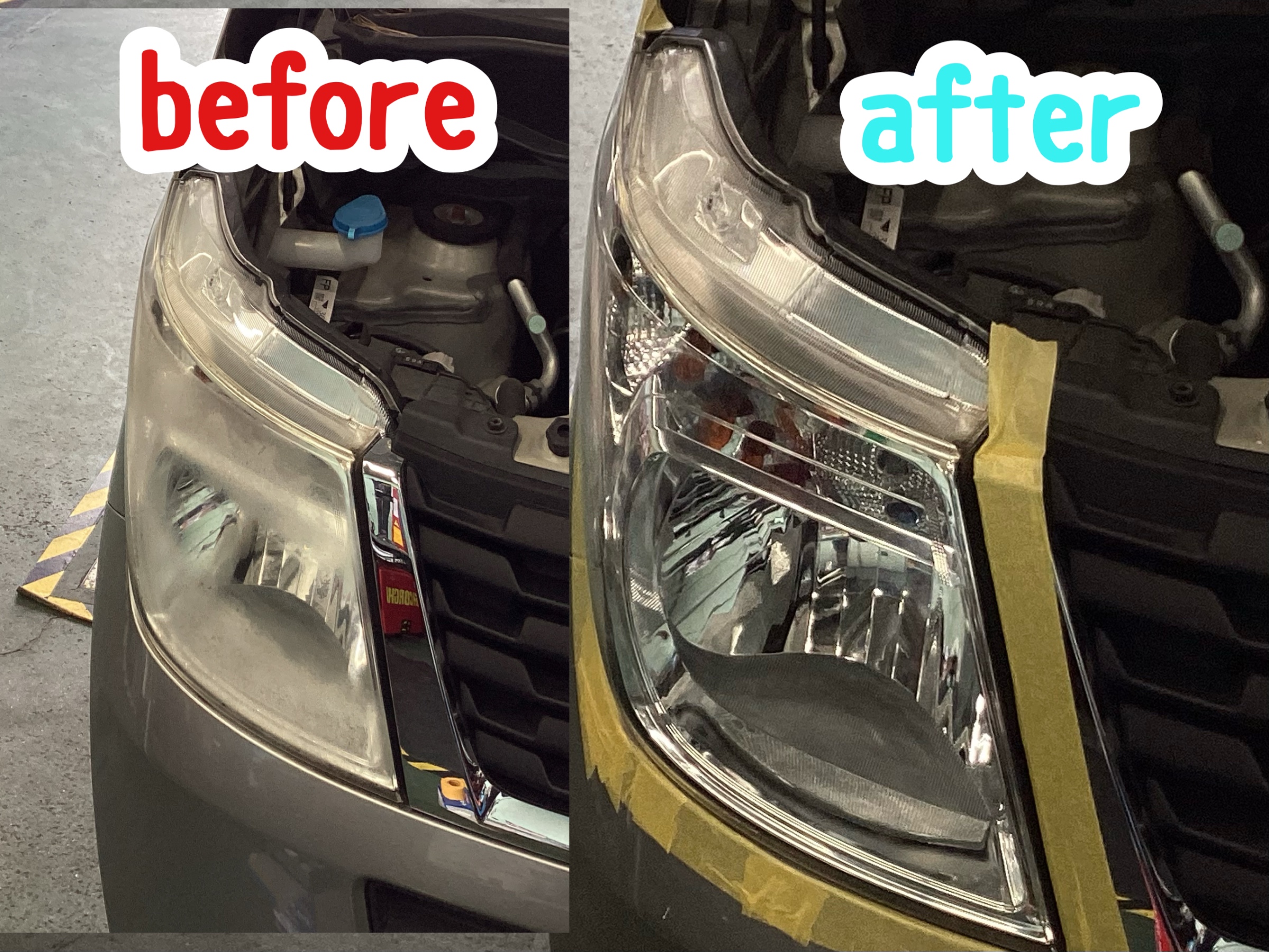 アフターの方は、ヘッドライトバルブまで見えるくらいツルツルに!