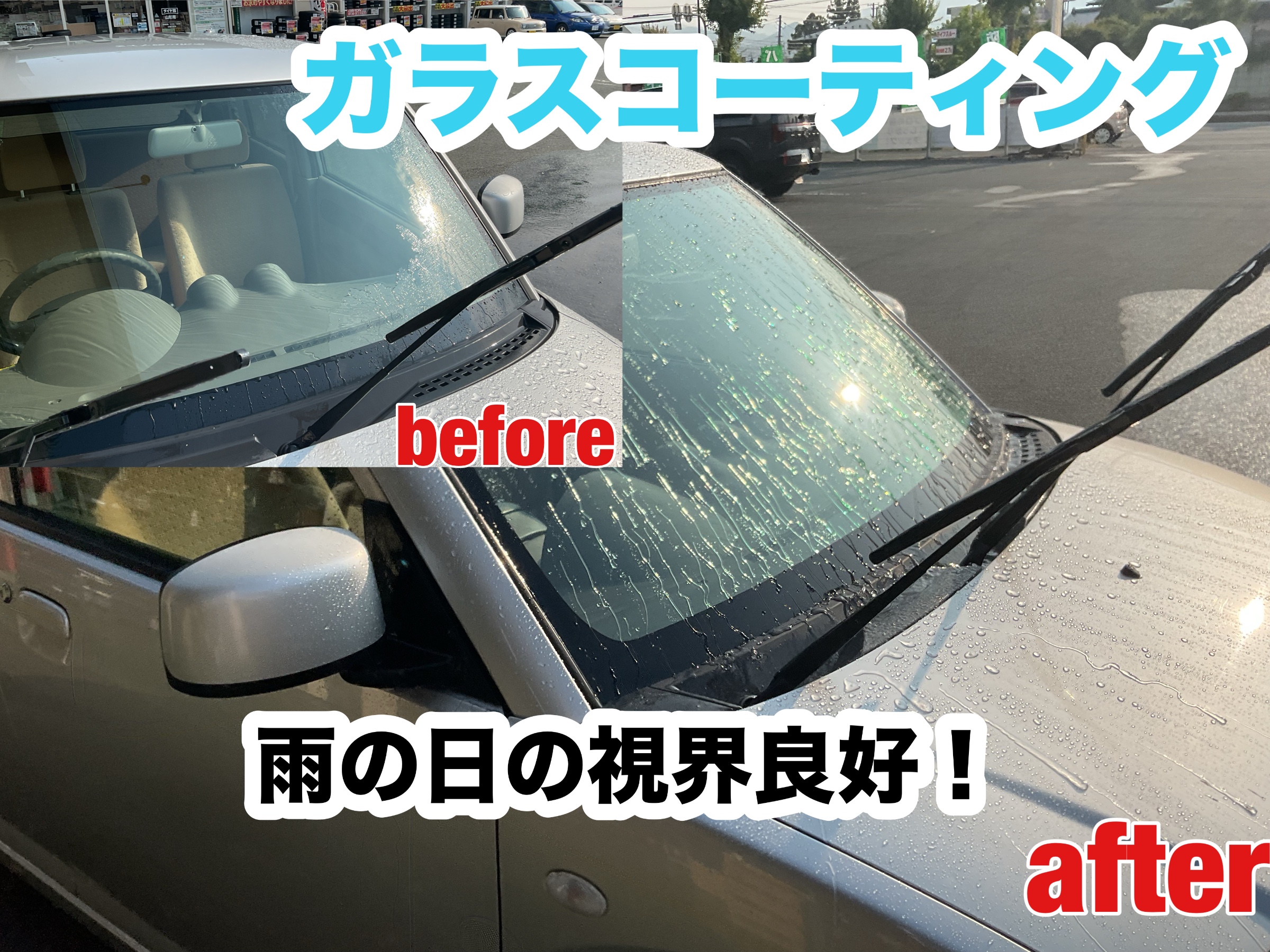 雨の日の視界も悪いのでガラス撥水コーティングを施工しました!