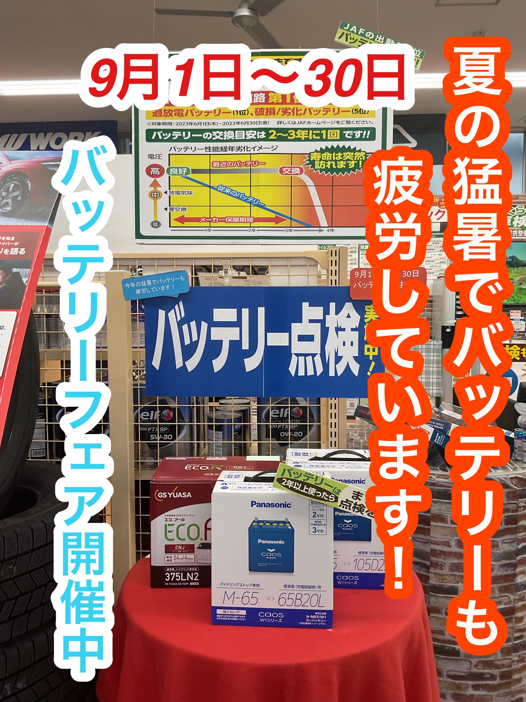 当店では9月1日〜30日までバッテリーフェア開催中です!