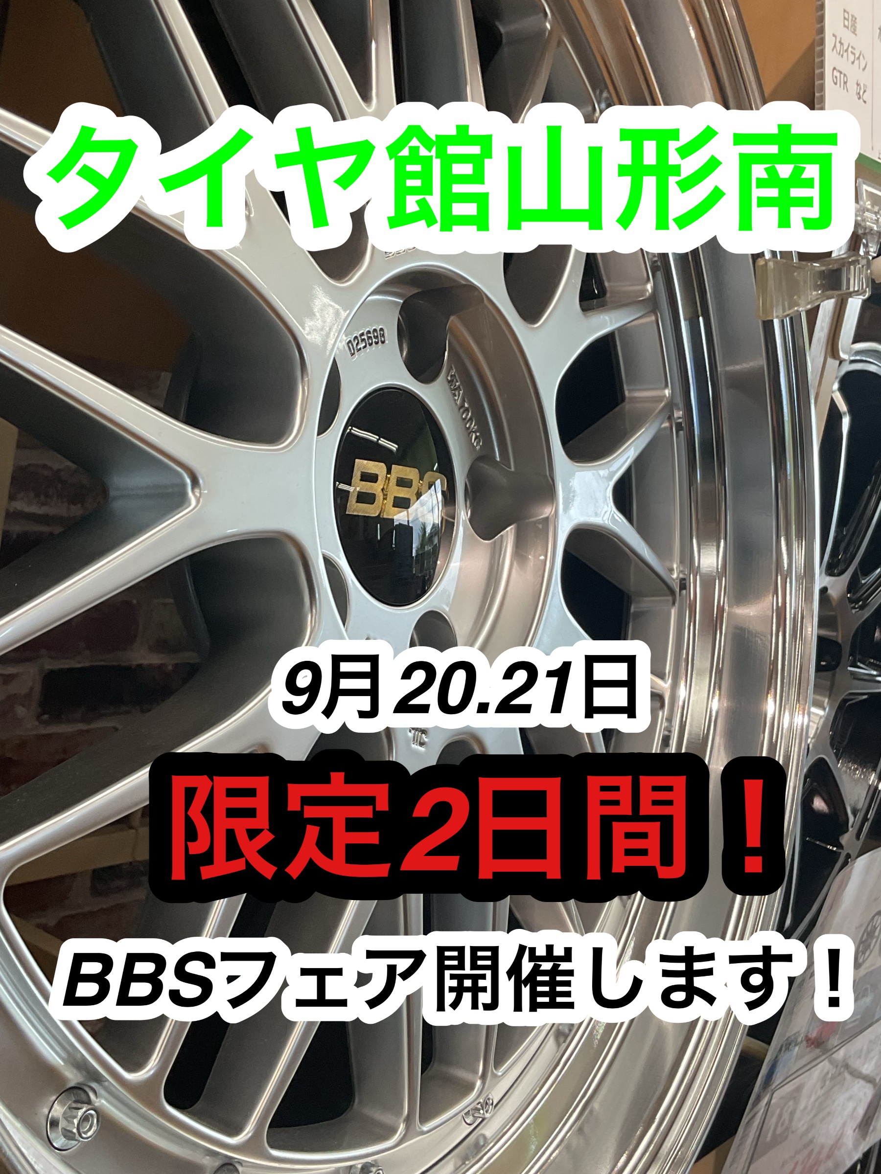 タイヤ館山形南 9月20日21日 BBSフェア開催中!