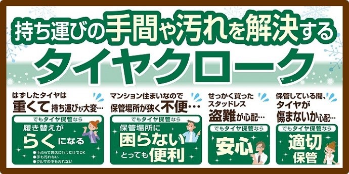 当店ではタイヤ交換時、交換したタイヤの置き場所・持ち運びにお困りのお客様に、