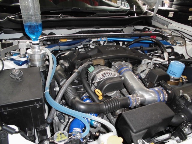 最後に排気もれチェックをしつつ、クーラント液の交換をして終了。
