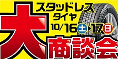 残り2日となりました、スタッドレスタイヤ特別大商談会は 10月17日まで開催中です! 買い替えるなら今がチャンス! 新商品のブリヂストン製ブリザックVRX3はもちろん、ブリザックVRX2、 アイスパートナー2、軽バン用にVL-1、W300、SUVには、DM-V3など!! 凍った路面や、雪道でしっかり止まり、曲...