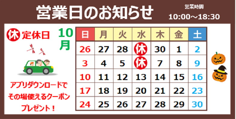 10月定休日のお知らせ。