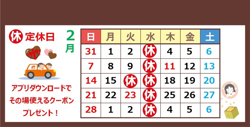 ★2月定休日のお知らせ★