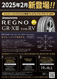 タイヤ館山形南のWebをご覧頂きありがとうございます。 2025年2月にレグノ新商品が発売になります! 軽自動車用レグノとミニバン用のレグノが一新することになりました! TYPE RVの方は、以前の REGNO GRVII からのモデルチェンジで、 今年発売して当店でも好評頂いている『REGNO GR-XⅢ』の 特性を...