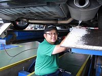こんにちはw 本日は、朝から「車の骨盤矯正・アライメント」の作業をしている高橋スタッフですw お車によって、調整箇所が違うのでもぐる回数も違ったりします(汗) 車の下は日陰で涼しいぃぃ~・・・・わけがない(汗) マフラーが熱いので、本日の気温と合わさってひじょ~に汗が出てきます(...