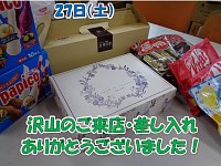 本日2回目の投稿になります。 沢山のご来店を頂き誠にありがとうございました! また、沢山の差し入れも頂きました! スタッフ一同励みにさせて頂きました♪ 明日28日は最終日になりますが 沢山のご来店お待ちしております♪