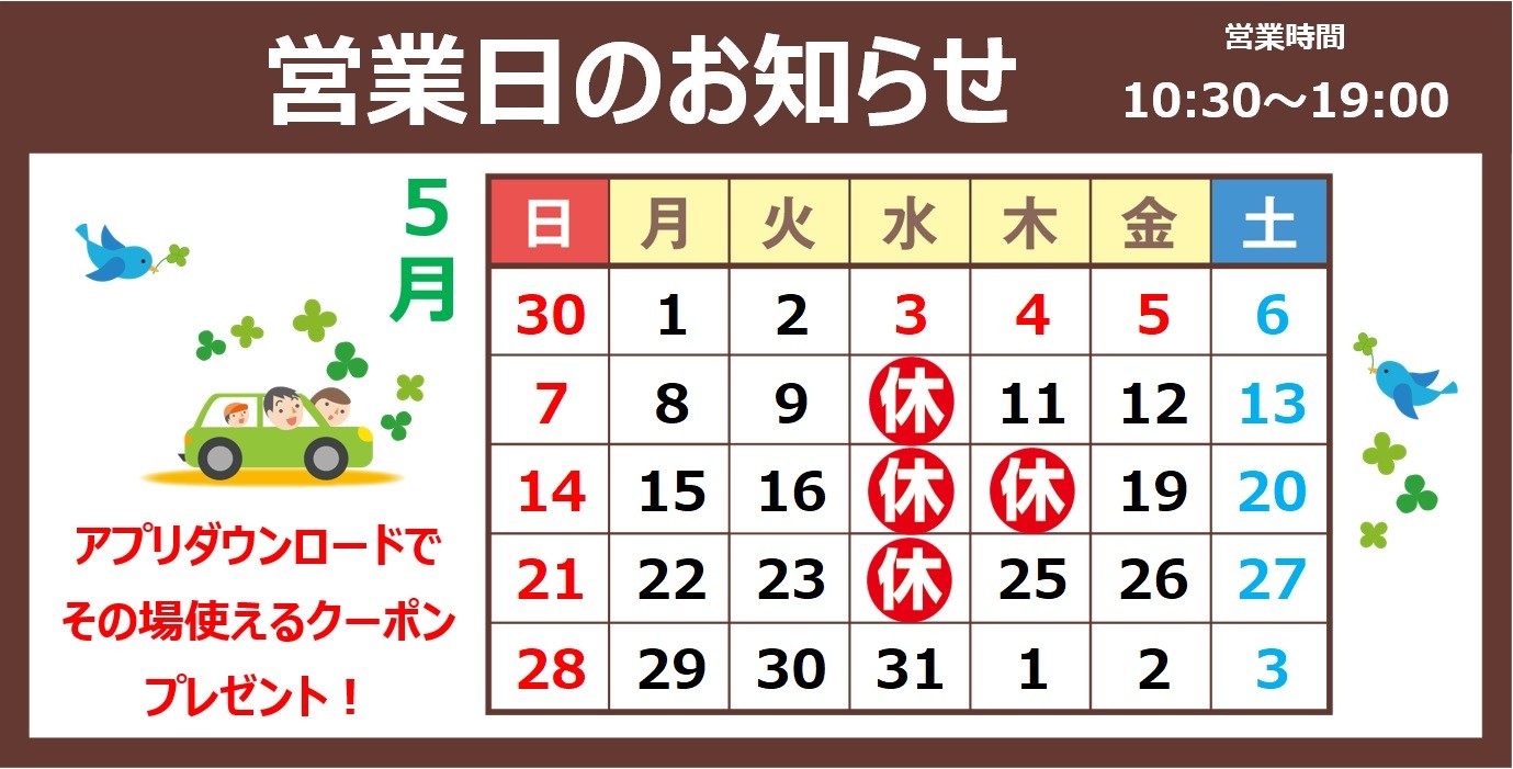 【5月の営業日と営業時間のお知らせ】