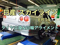【日産スカイライン ER34 タイヤ交換&四輪アライメント】
