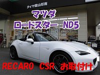 お車:マツダ ロードスターND5 商品:RECARO RCS ホワイトシェル RECARO RSC用シートレールセット ※上記商品名クリックでRECARO RCSページへ飛びます 作業:シートお取付け 昨日に引き続き、マツダ ロードスターです♪ いつもタイヤ館山形南店WEBをご覧頂き、誠にありがとうございます! 昨日に引き...