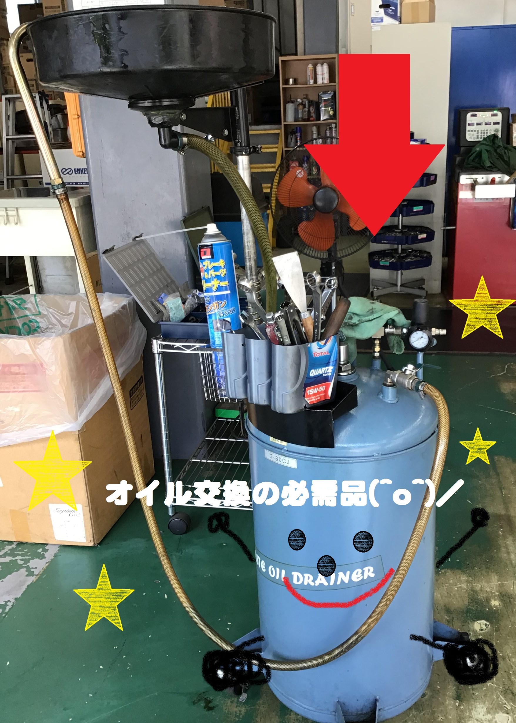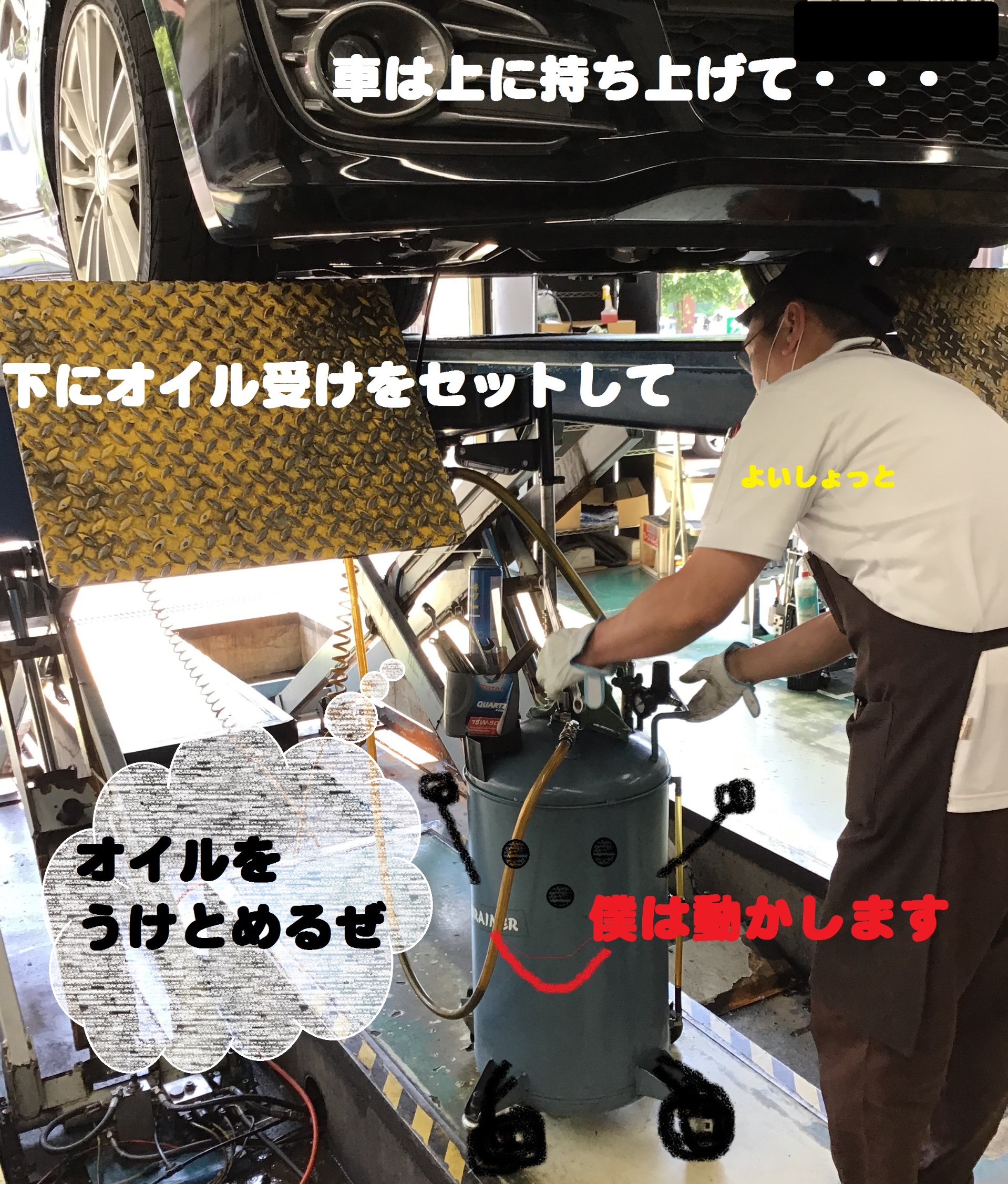 「 車に入っている古いオイルをながすやつぅぅ~ 」