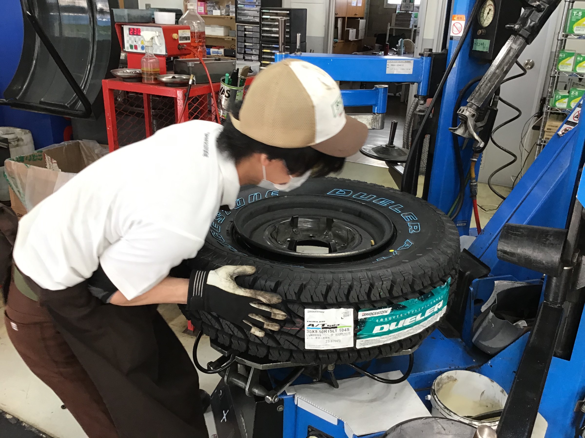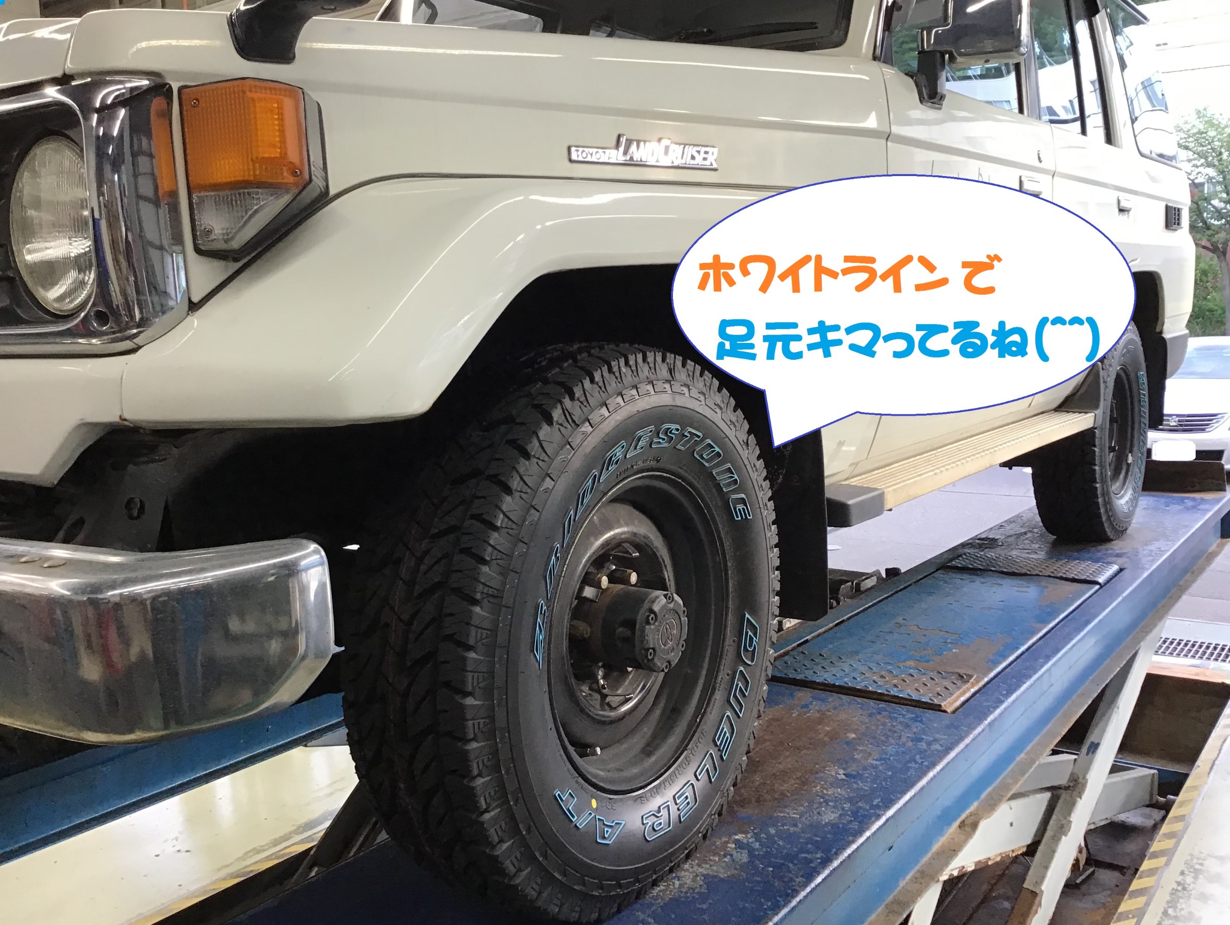 ラウンドクルーザーの新品タイヤ交換の様子です。