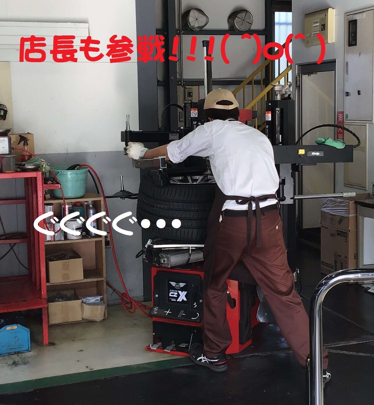 私は4月からタイヤ館に入って以来、このサイズのタイヤを初めてみました・・・・(・o・)でかーい