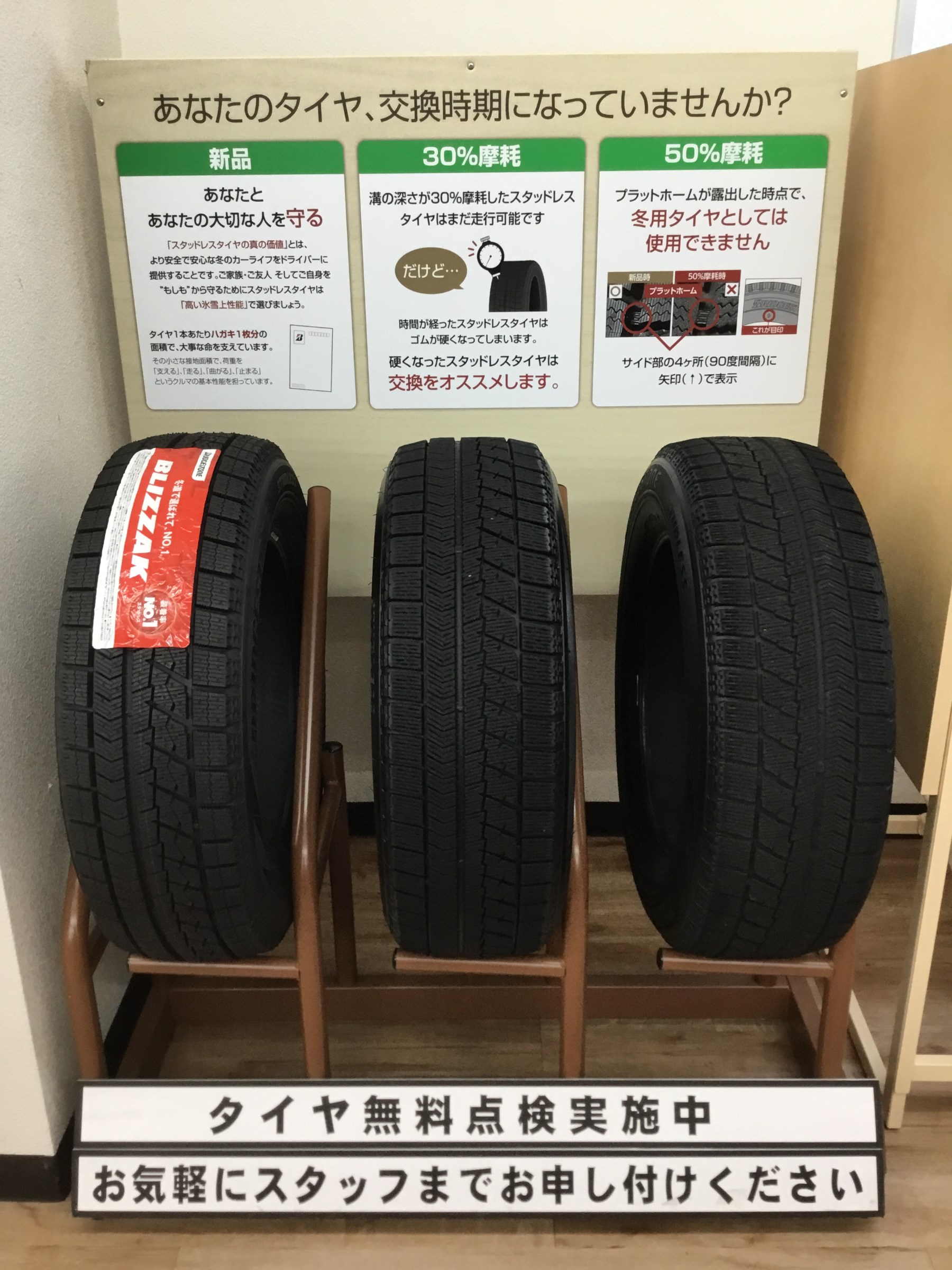 店舗まで、冬タイヤ1本持ってきていただくだけで点検ができます(^o^)