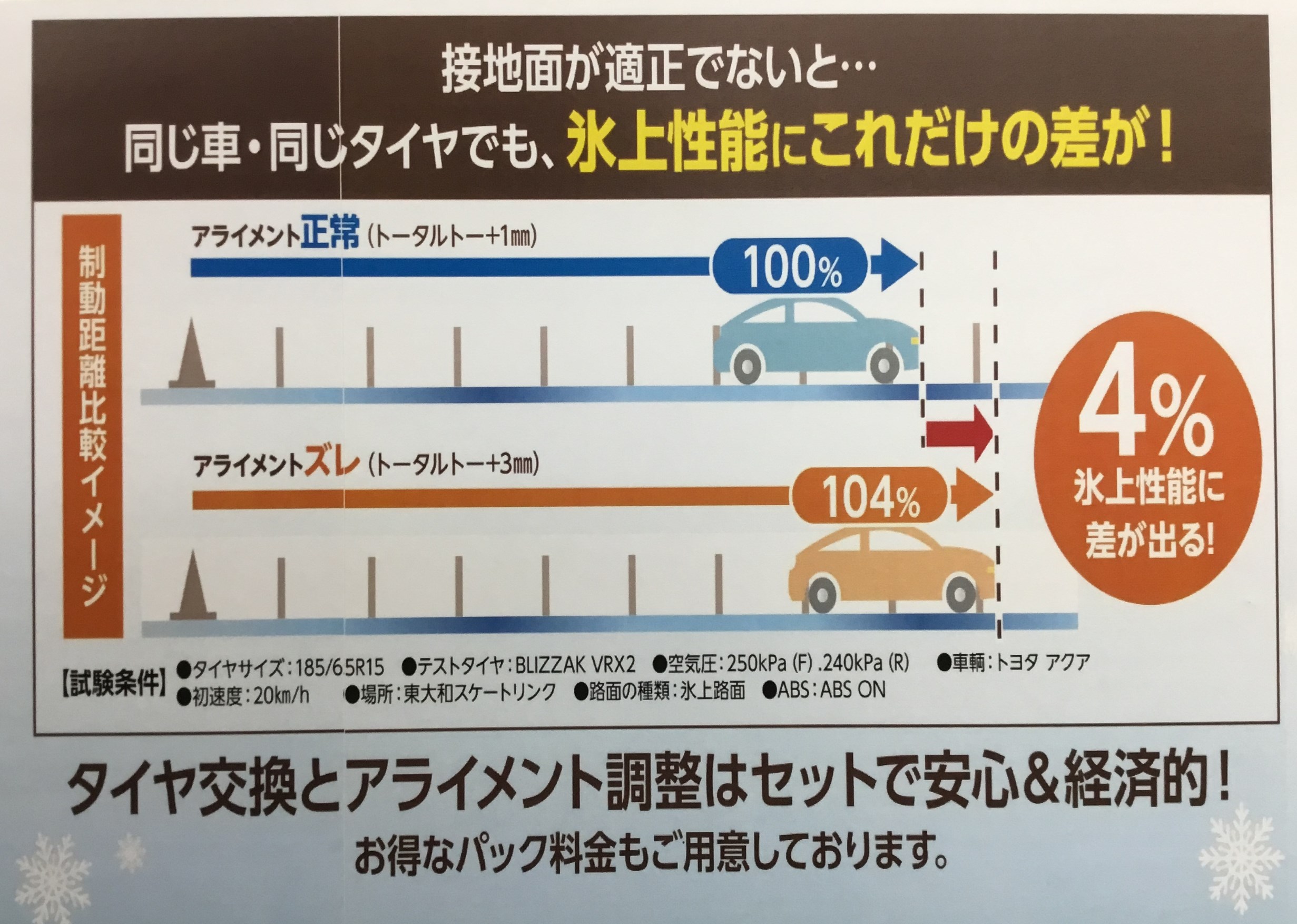 同じ車・同じタイヤでも氷上性能に約4%の差が出るんです(T_T)