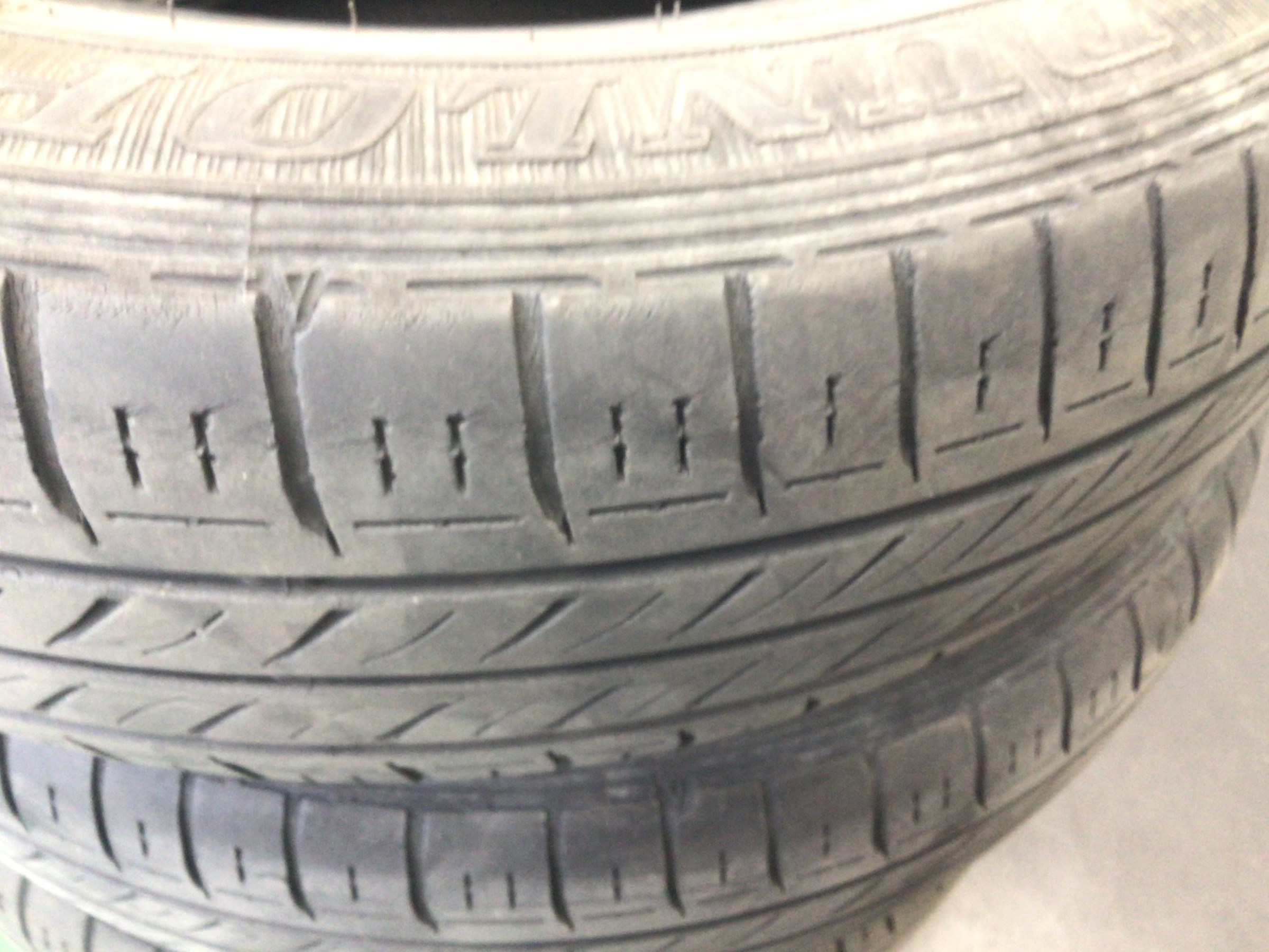 約7年ご使用いただいたタイヤは溝も少なくひび割れも多数あります。